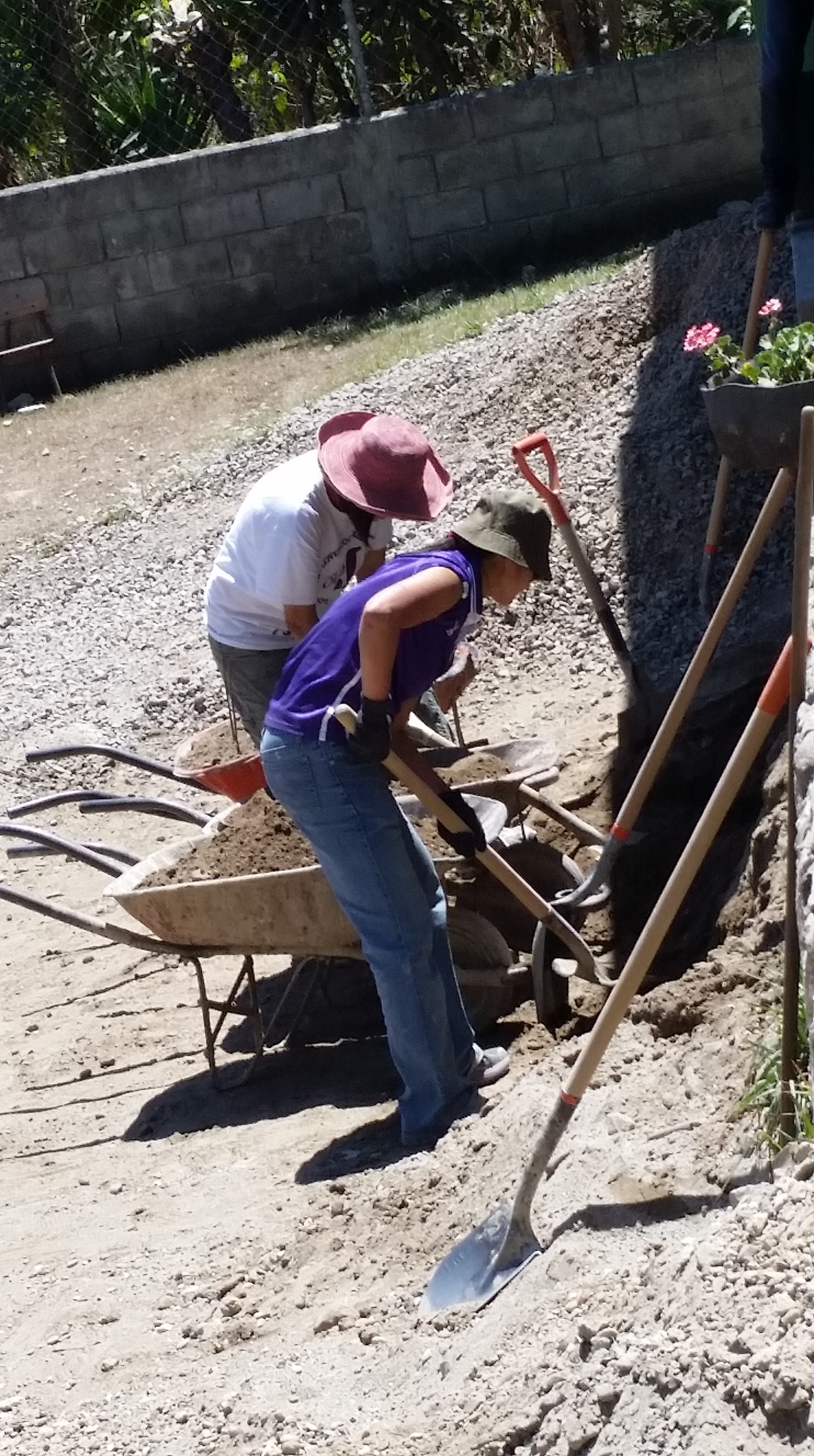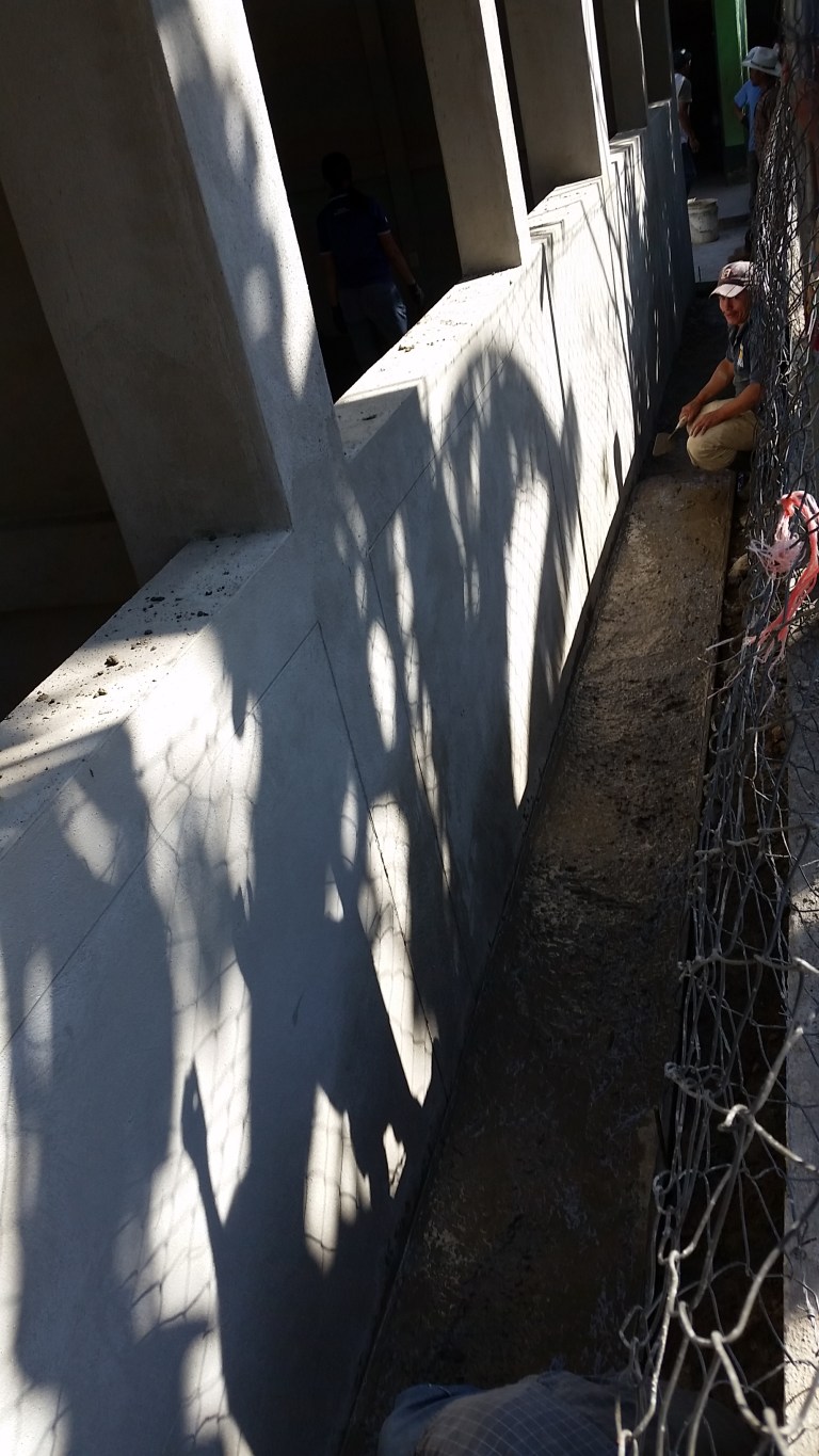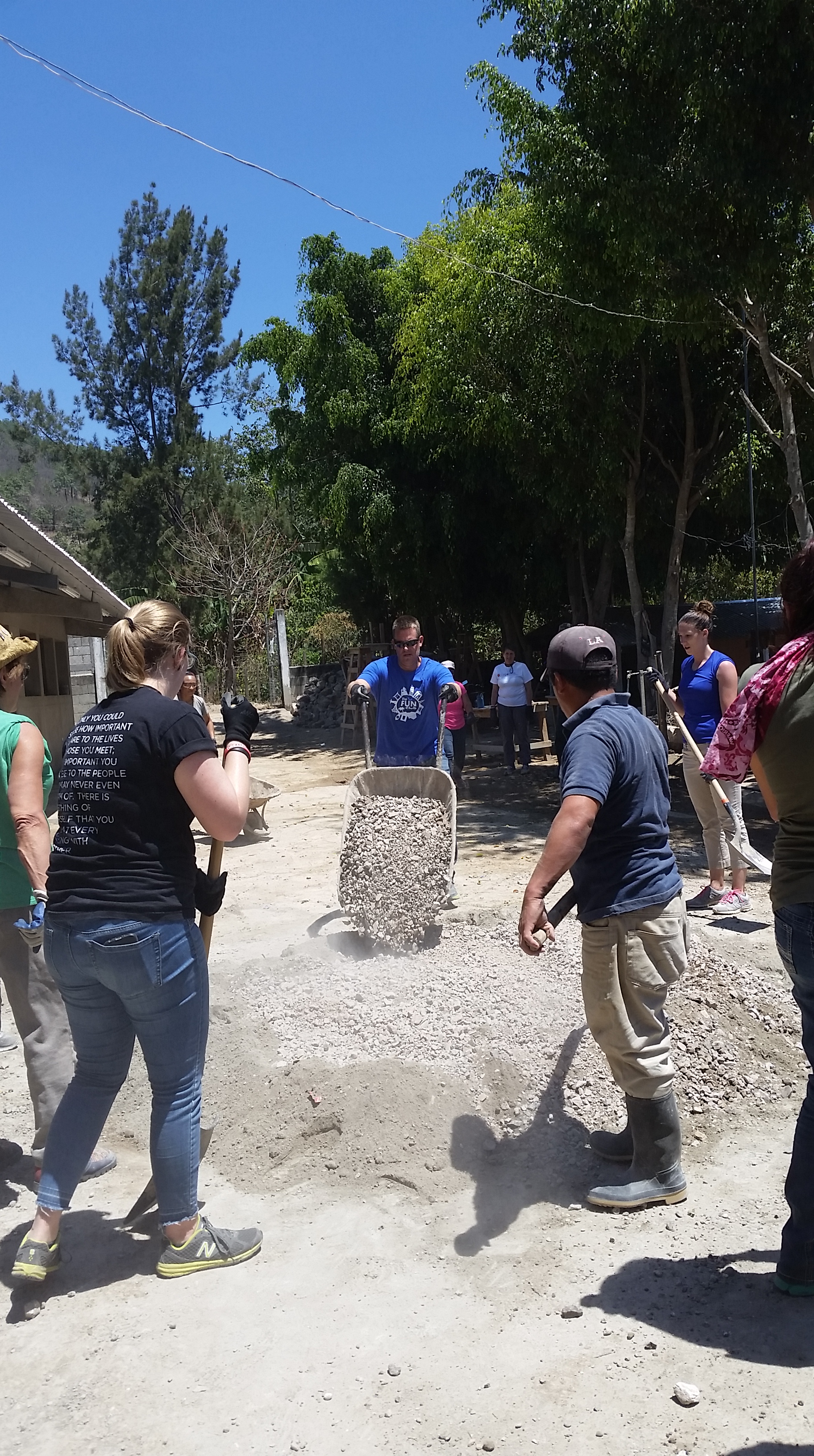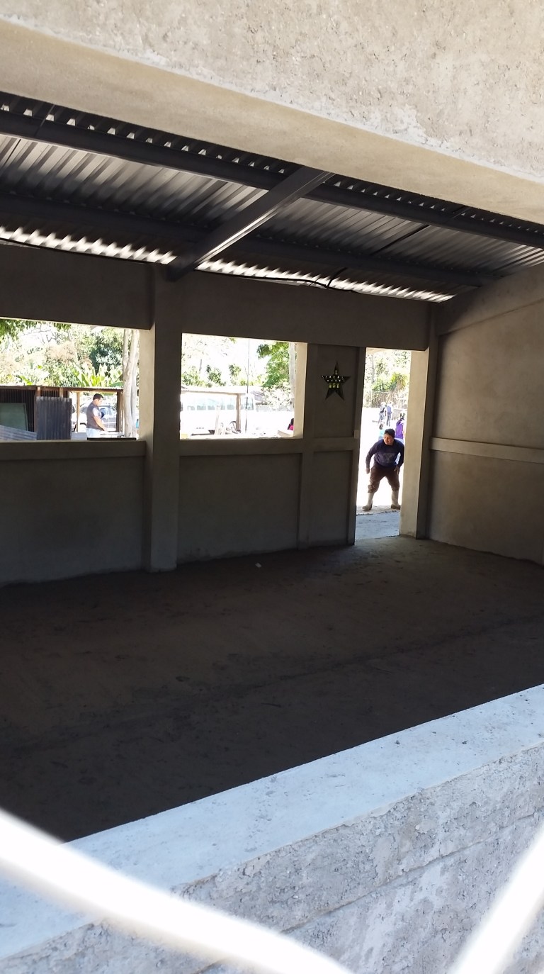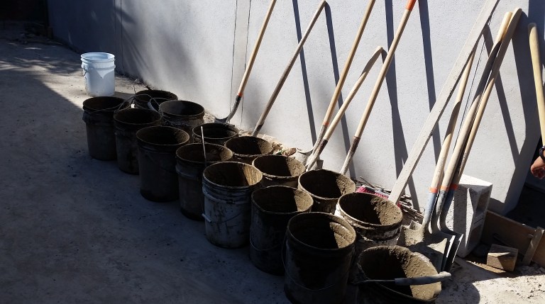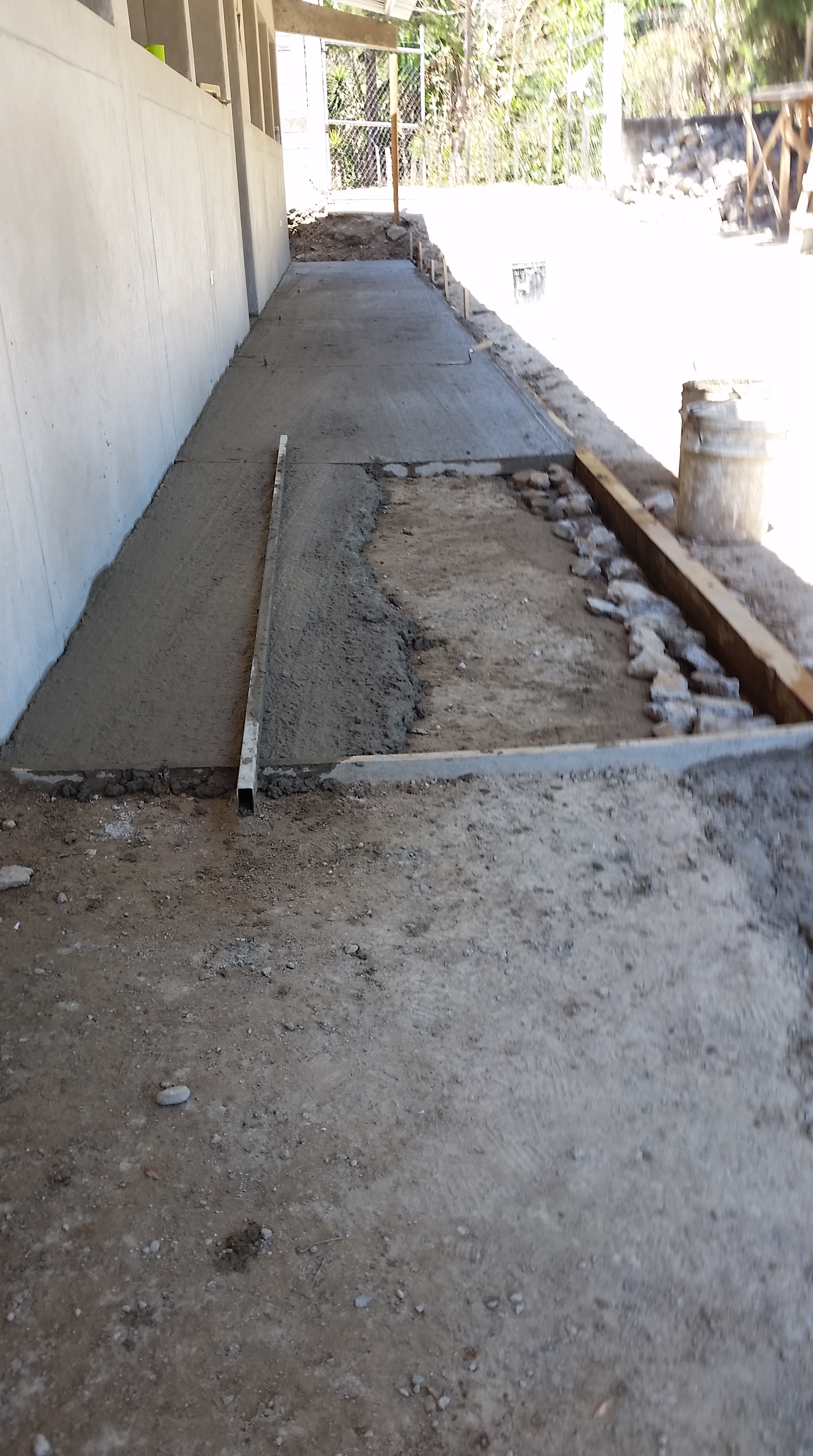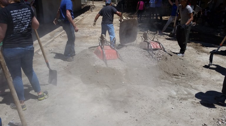 Concrete and sand get mixed ready to complete the side-walk today…