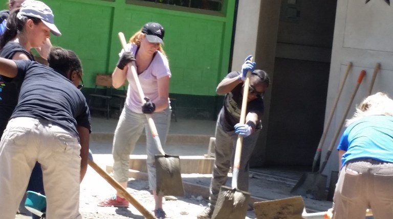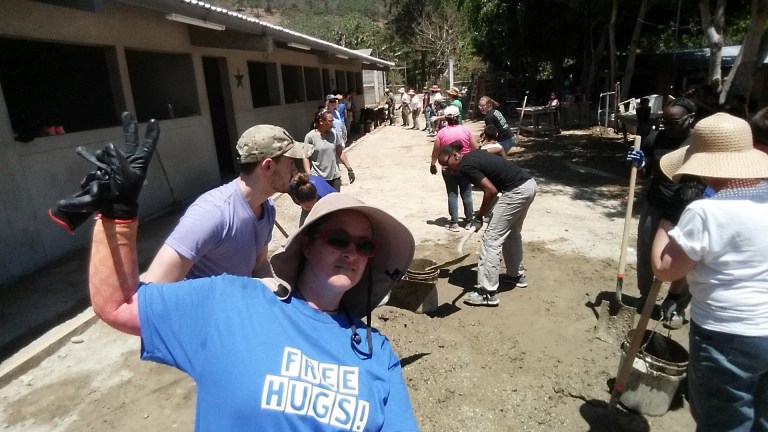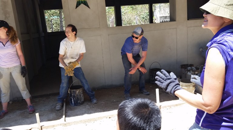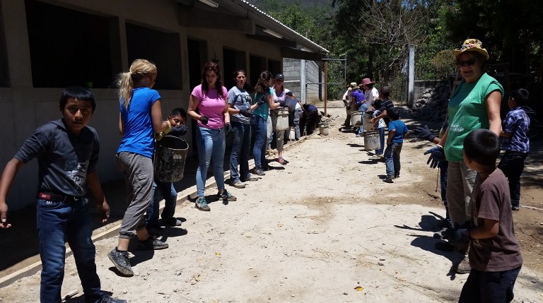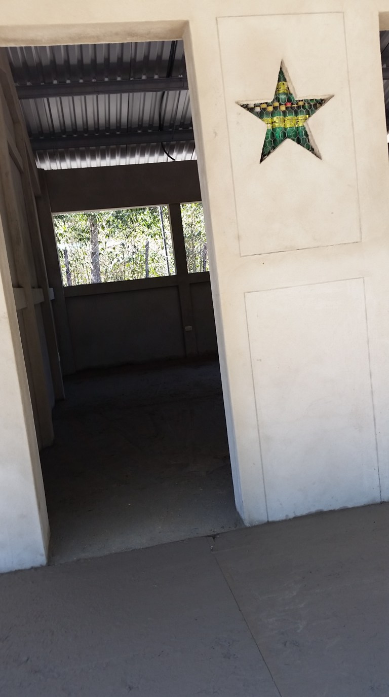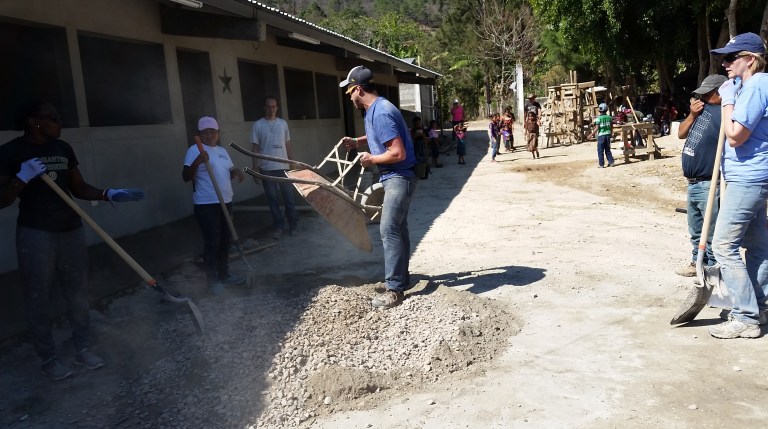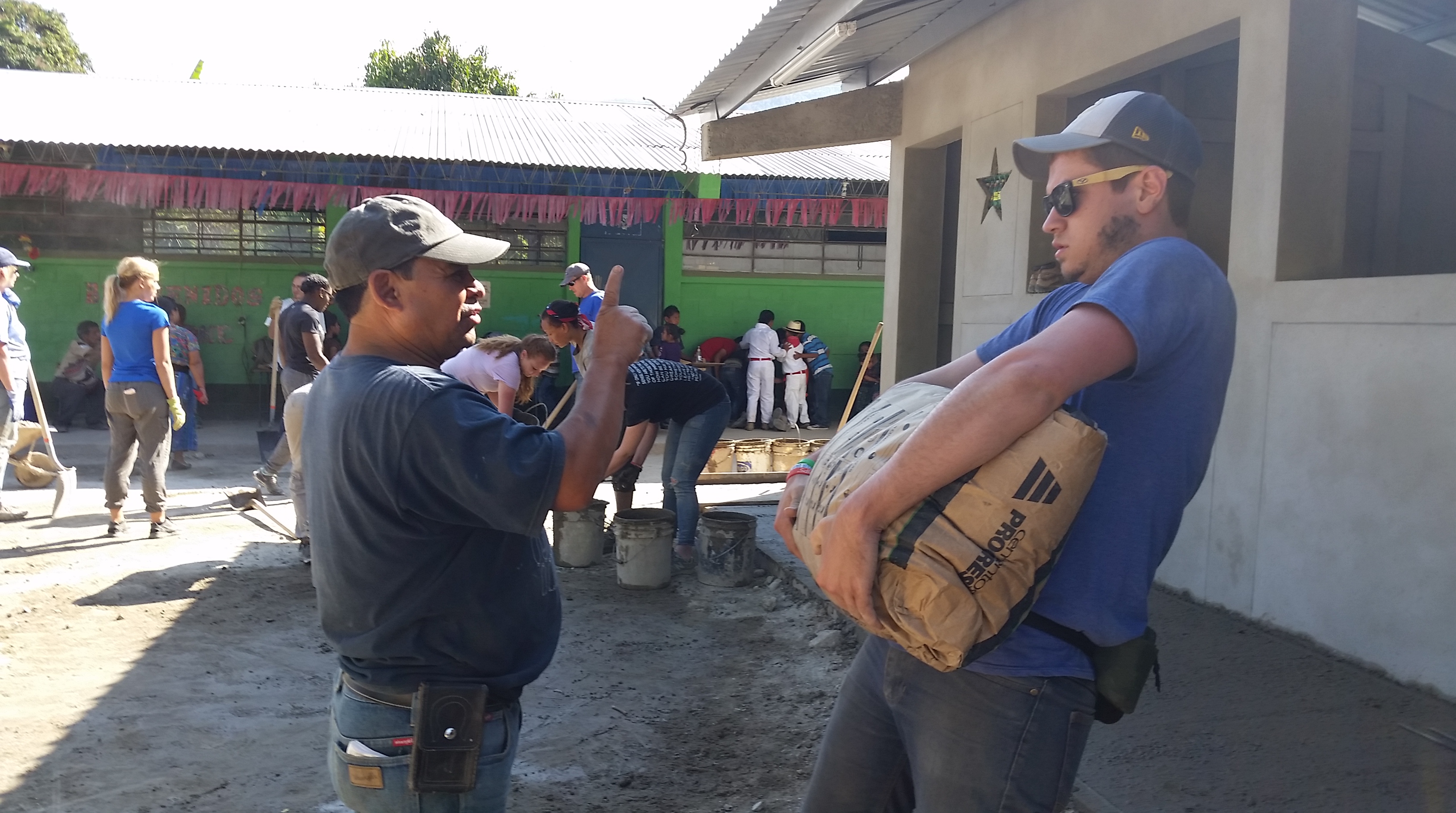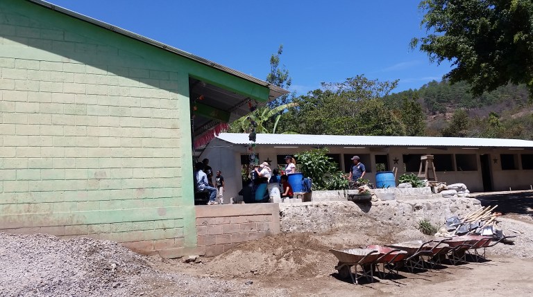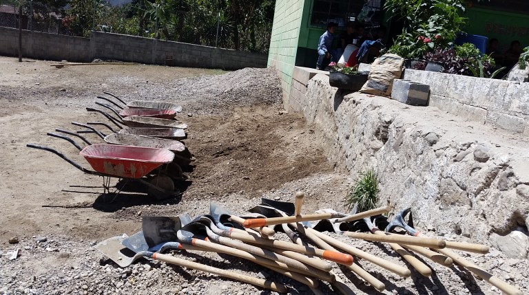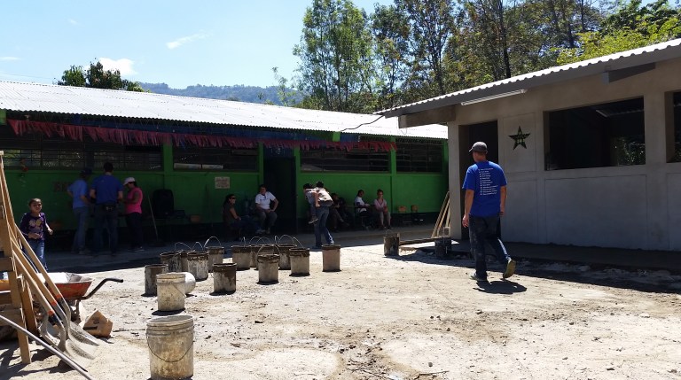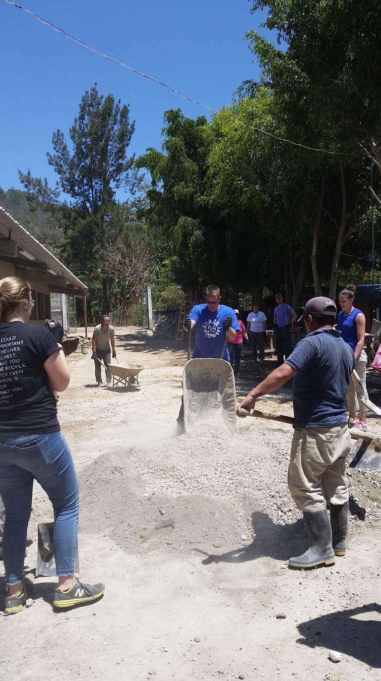 Concrete and sand get mixed ready to complete the side-walk today…