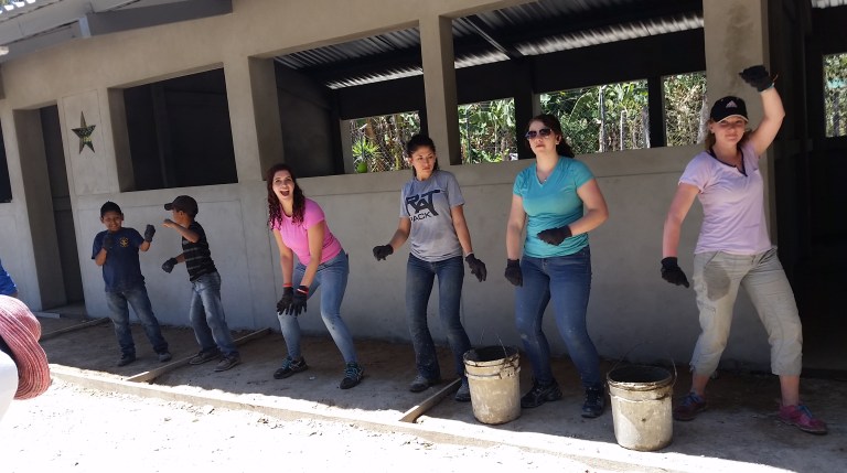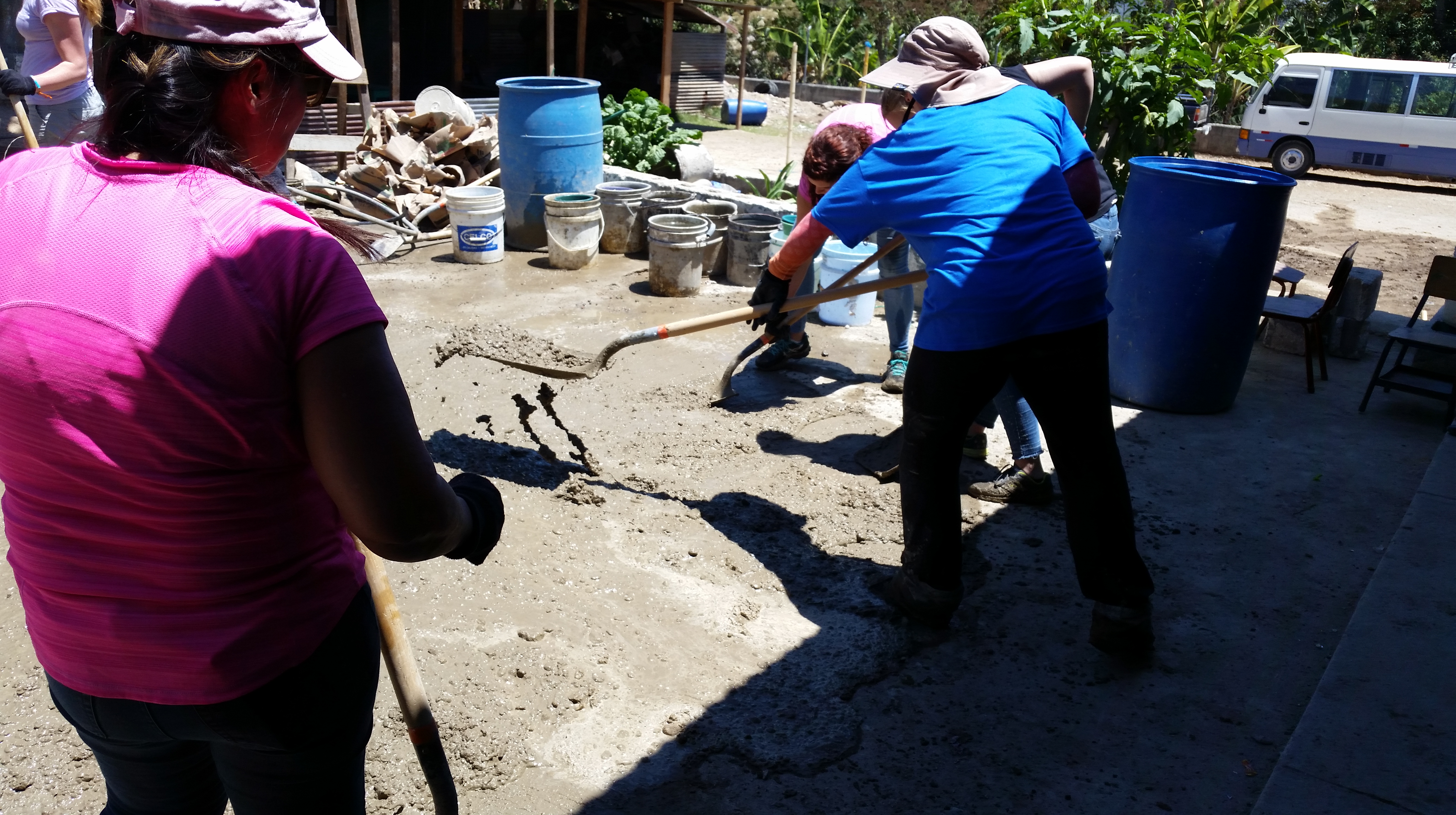 …then we add the gravel to be mixed in with water to create the concrete mixture.