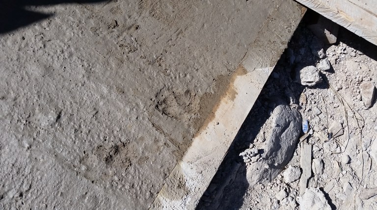 Hmmm, there seems to be some puppy-prints in this newly-laid concrete…?!