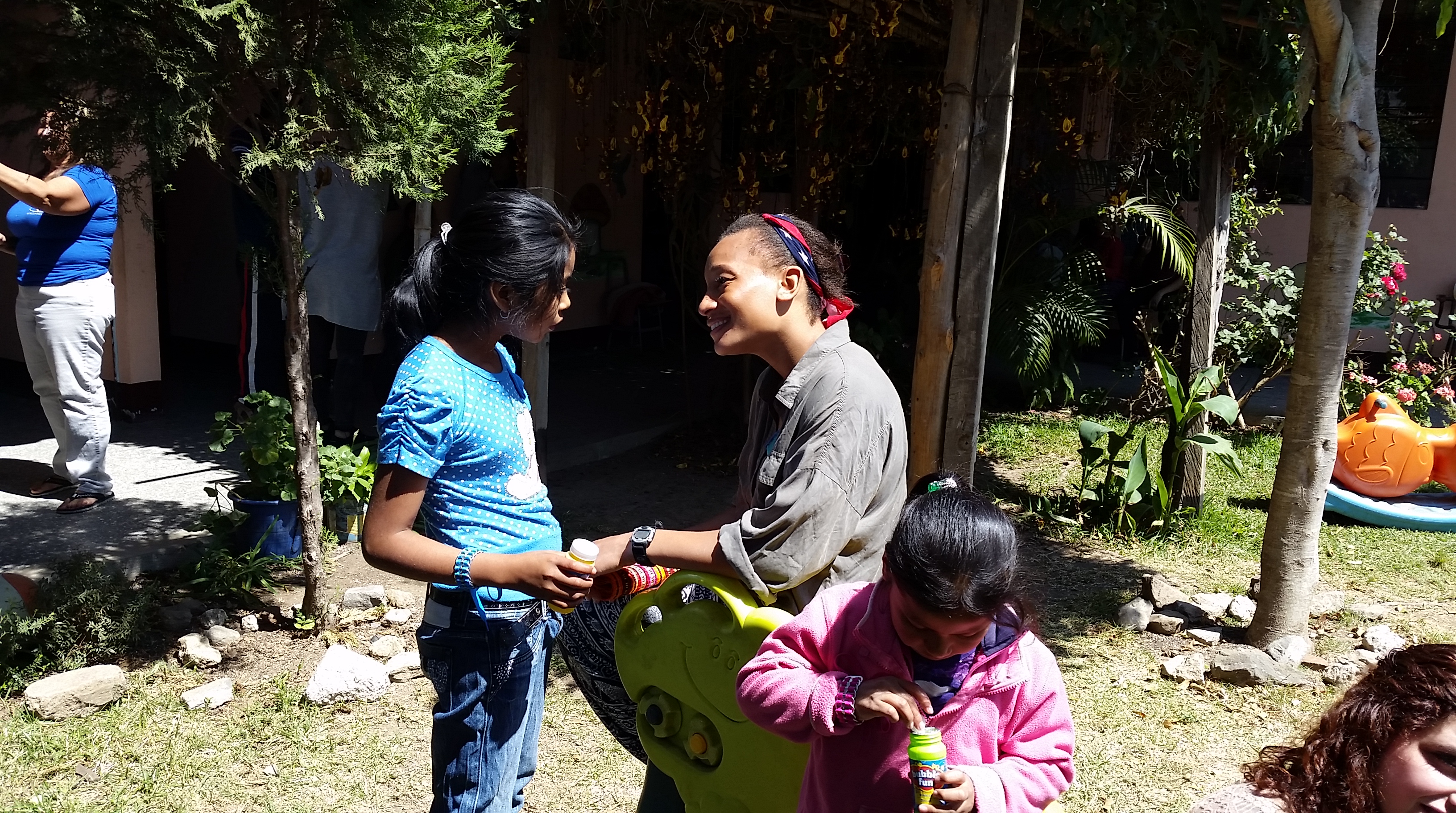 We then spent time playing with the kids: bubble-blowing….