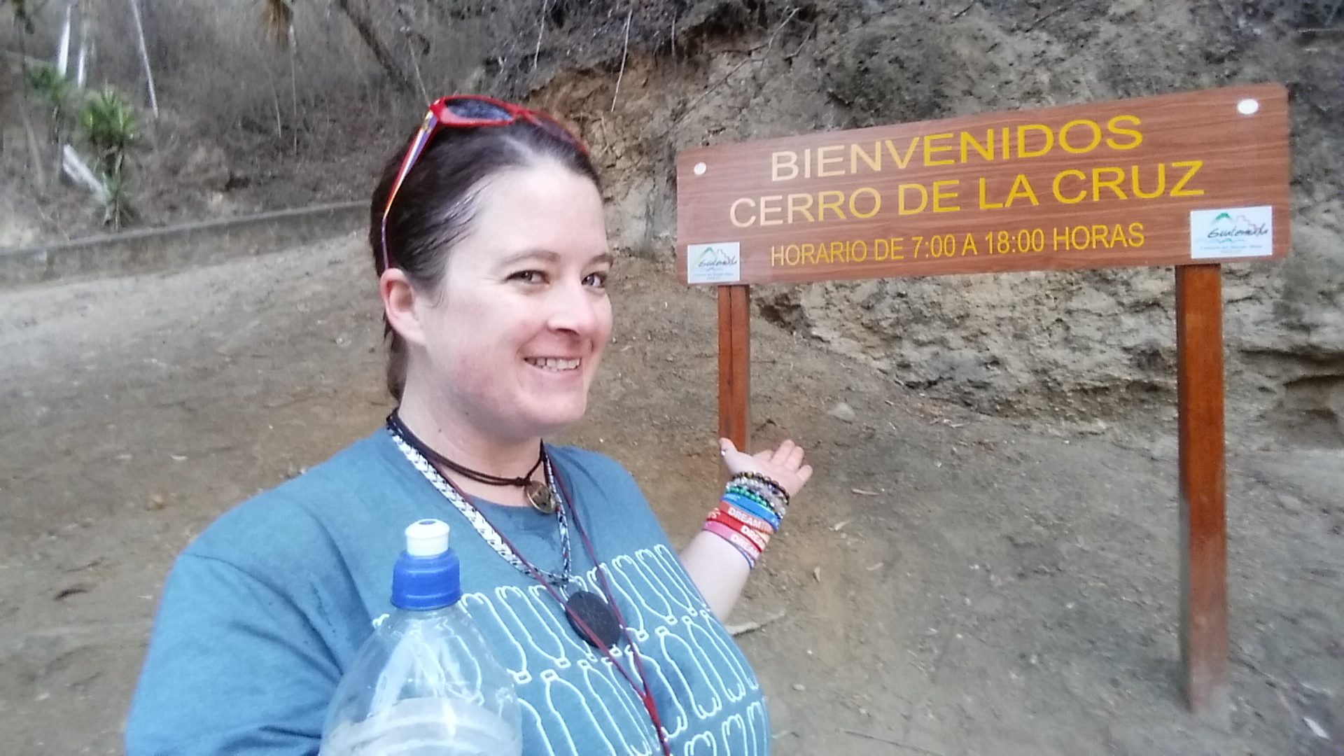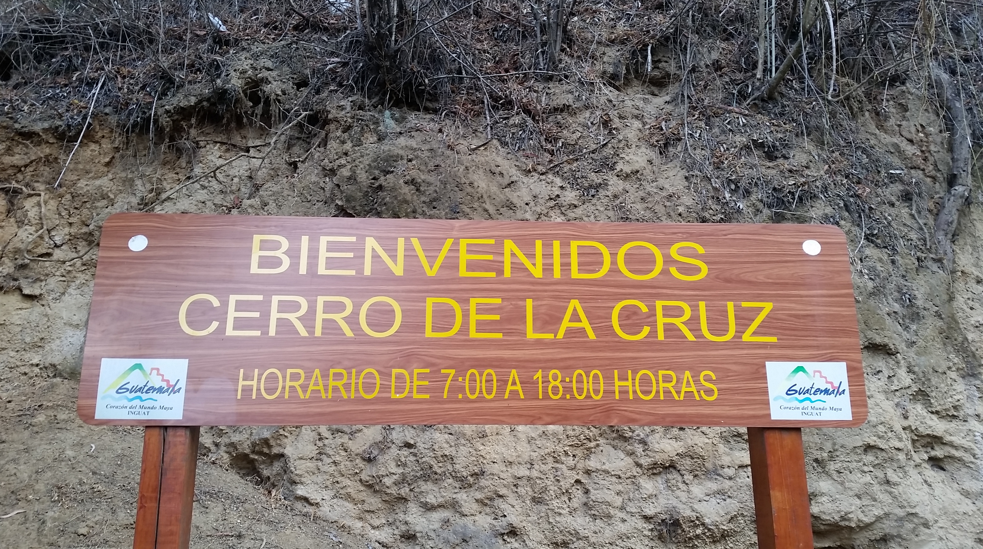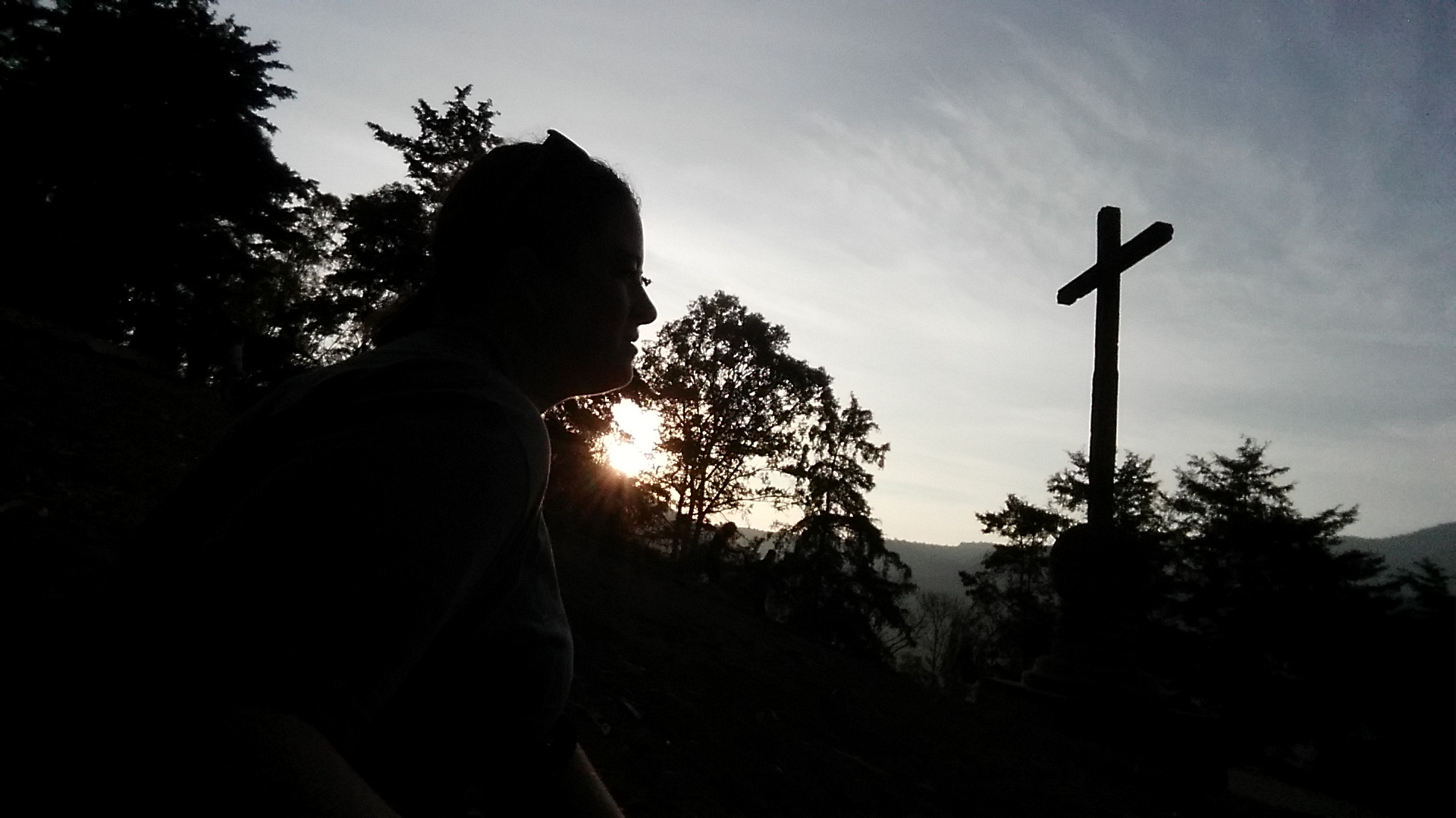 The cross at the top of the lookout overlooking Antigua and the volcano.
