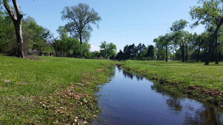 Lo’ and behold, just down the street is a gorgeous park complete with stream and play equipment.