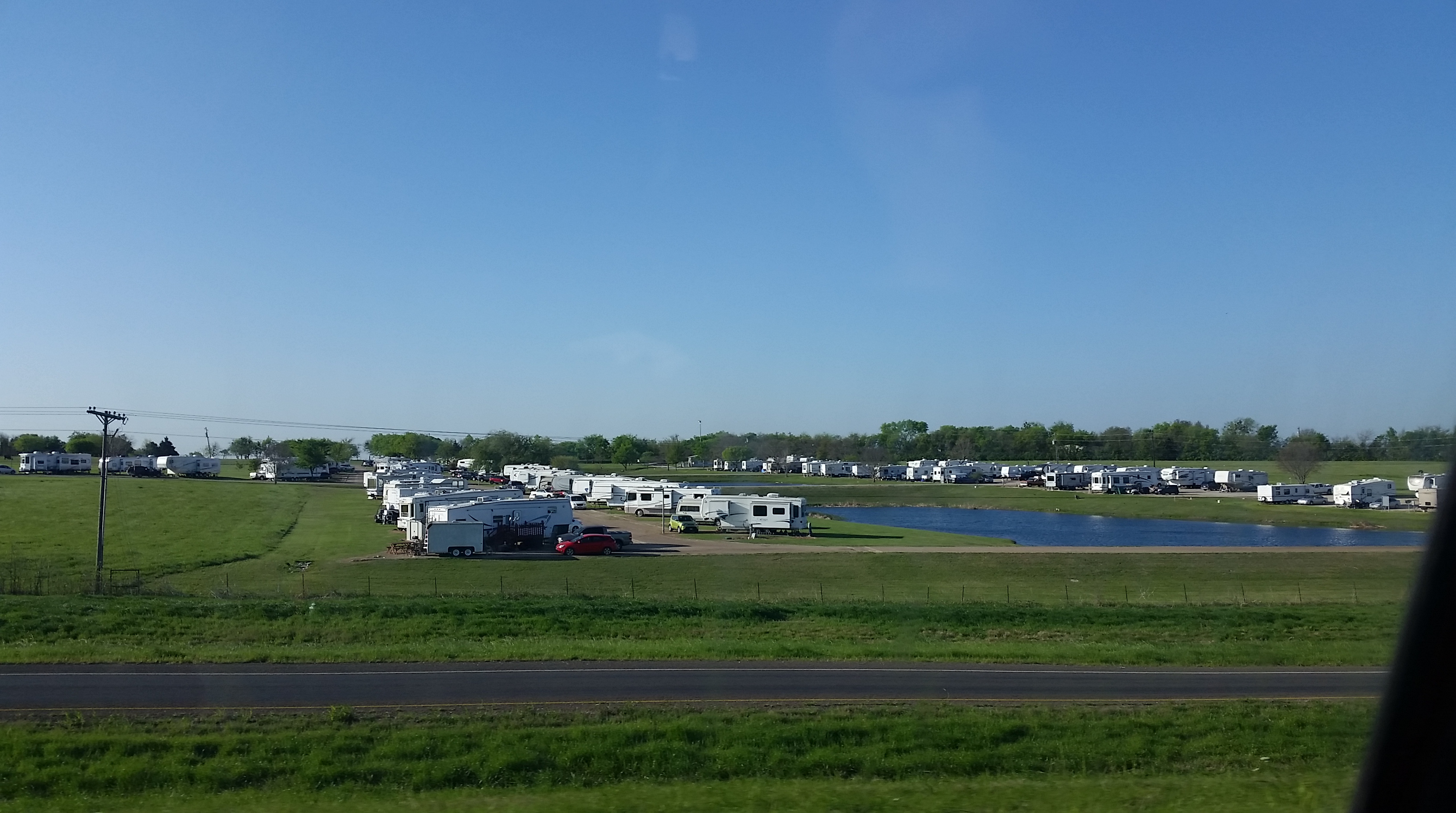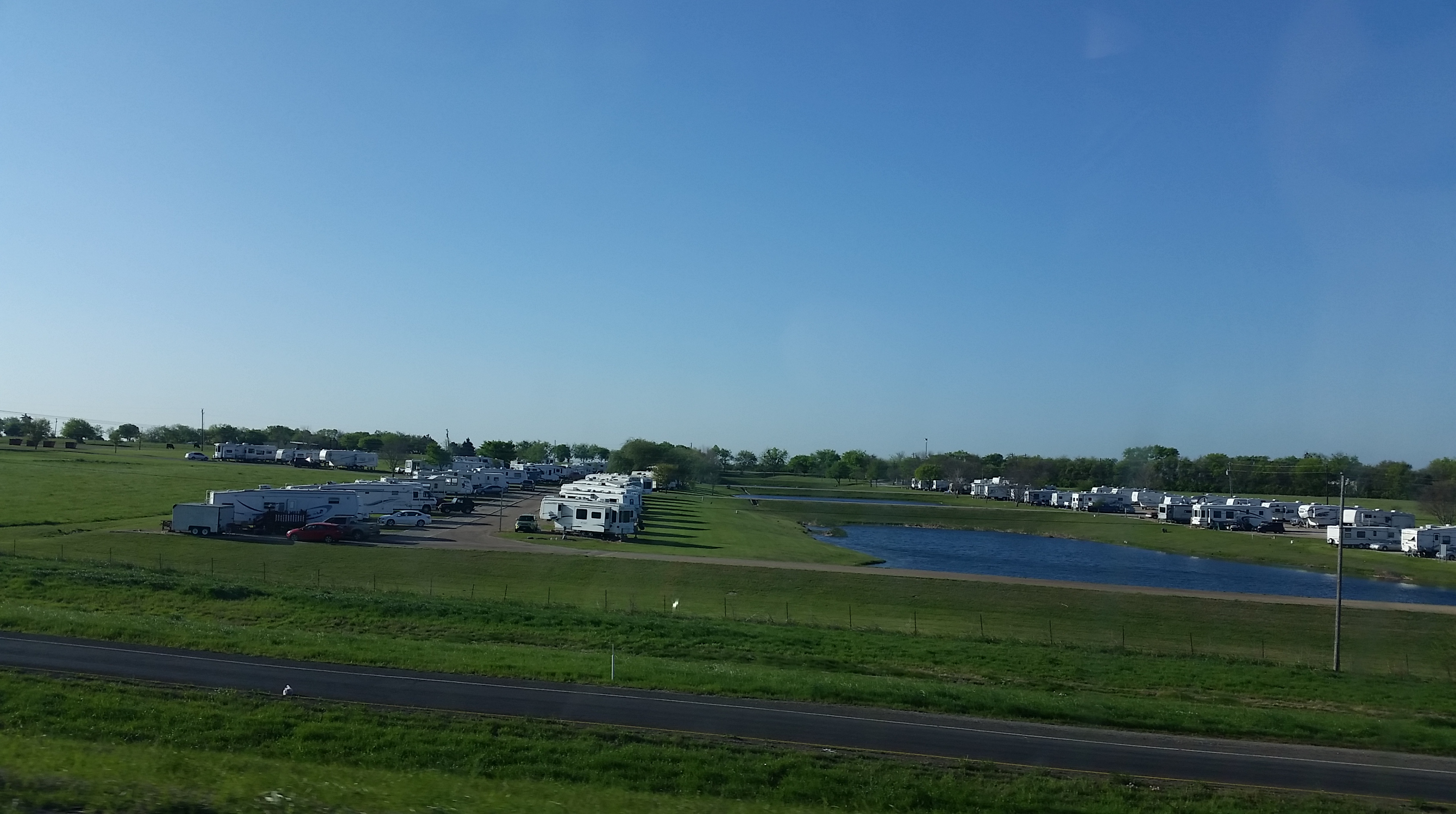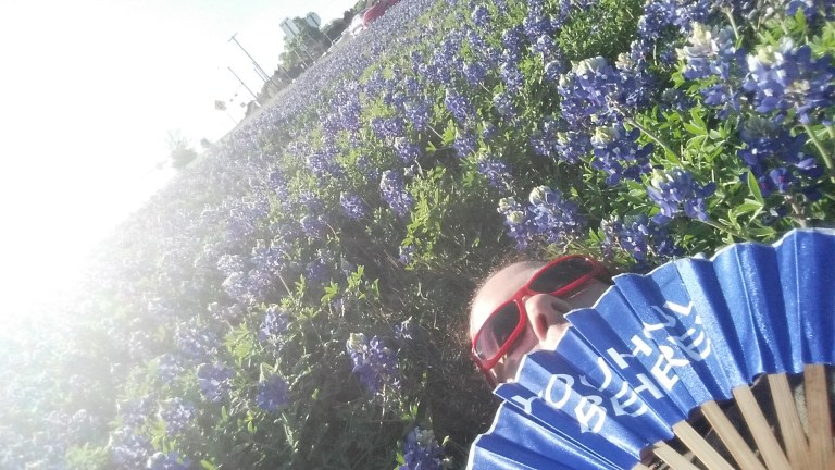 There are wildflowers all along the side of the freeway… the orange ones are Painted Indians, the bluey / purple ones are the Texas’ state flower, the Bluebonnet (so named for their bonnet-shaped petals and blue colour, although not all Bluebonnet varieties are blue). The Bluebonnet was designated as the Texas state flower in 1901 and it is illegal to mow lawns when they are in season. The state government has planted crops of Bluebonnets alongside the freeways and highways to brighten the journey and provide habitat for this flower, once under threat of extinction.