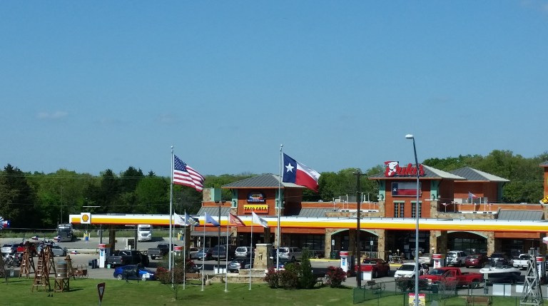 …and we’ve arrived! The largest truck-stop in Texas, complete with gas-station, eatery and souvenir shop, with everything you could ever desire under one roof, just off the side of the freeway..!
