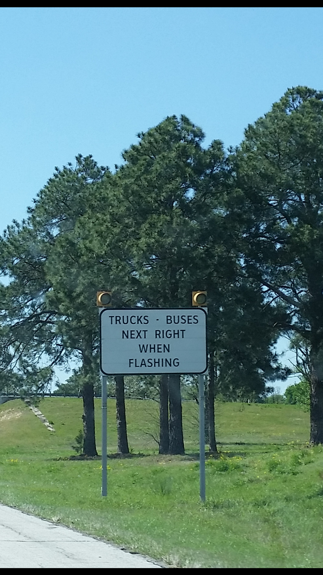 Then we get to this, the Commercial Motor Vehicle inspections – basically when the lights are flashing, all commercial vehicles need to pull over to the specialised shoulder of the freeway to be inspected – load checked and weighed, brakes checked, general vehicle check, etc. We don’t have this in Australia!