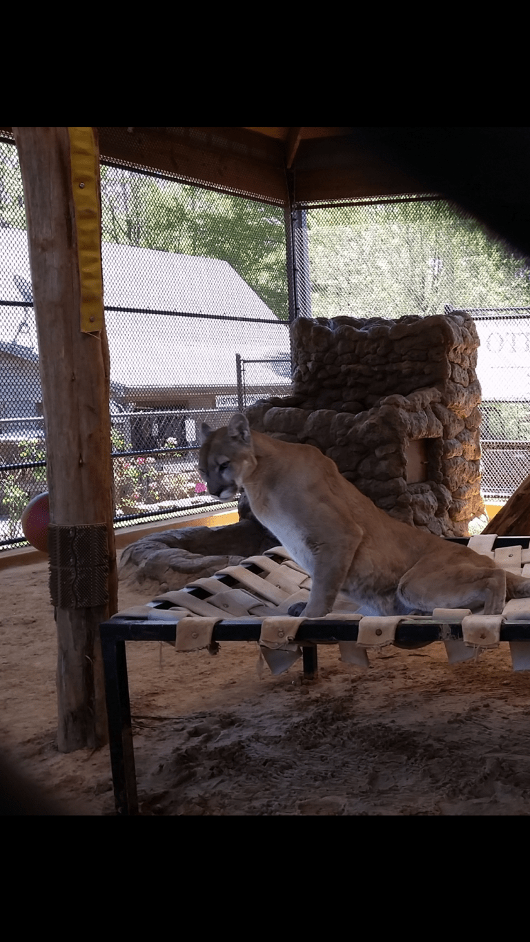 This is TinCup, a Puma rescued from New Mexico after being found and attacked by dogs. He was supposed to be euthanised as there was no rescue or rehabilitation facility for pumas in the area, but got a chance at survival and a new lease on life at Tiger Creek.