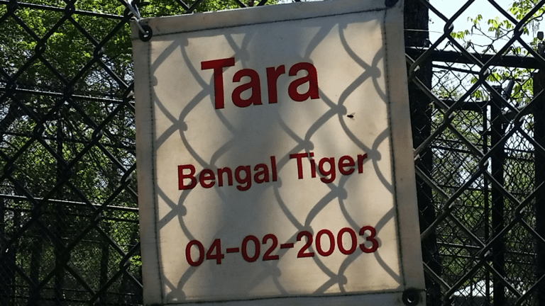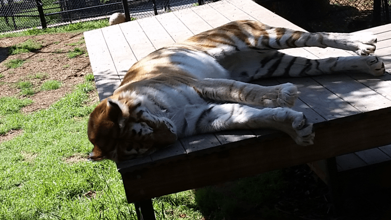 Amara, (who shares my birthday!) a Bengal Tiger rescued from a private owner who thought it was entertaining to allow her to “play” with the owner’s Rottweiler. Amara was scared and beaten and the local authorities removed her from this owner and placed her with Tiger Creek. It took months of rehabilitation to settle the frightened and stressed cub, and now she lives with Sierra, one of Michael Jackson’s former tigers from Netherland Ranch.