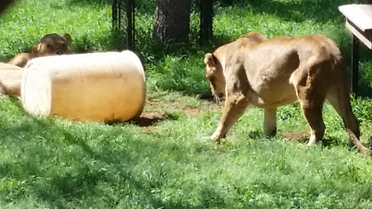Kenya joined the pride from a circus, although she had a terrible declawing job which has left her crippled and in pain (circuses don’t generally declaw cats). The rehabilitation has helped with the pain, however she will always limp. Declawing a cat is the equivalent to taking off a human’s finger tips just below the nail bed, and causes incredible stress and pain to the animal. Kenya suffered a great deal more due to a botched declaw job, so you can only begin to imagine the suffering this poor cat has gone through!