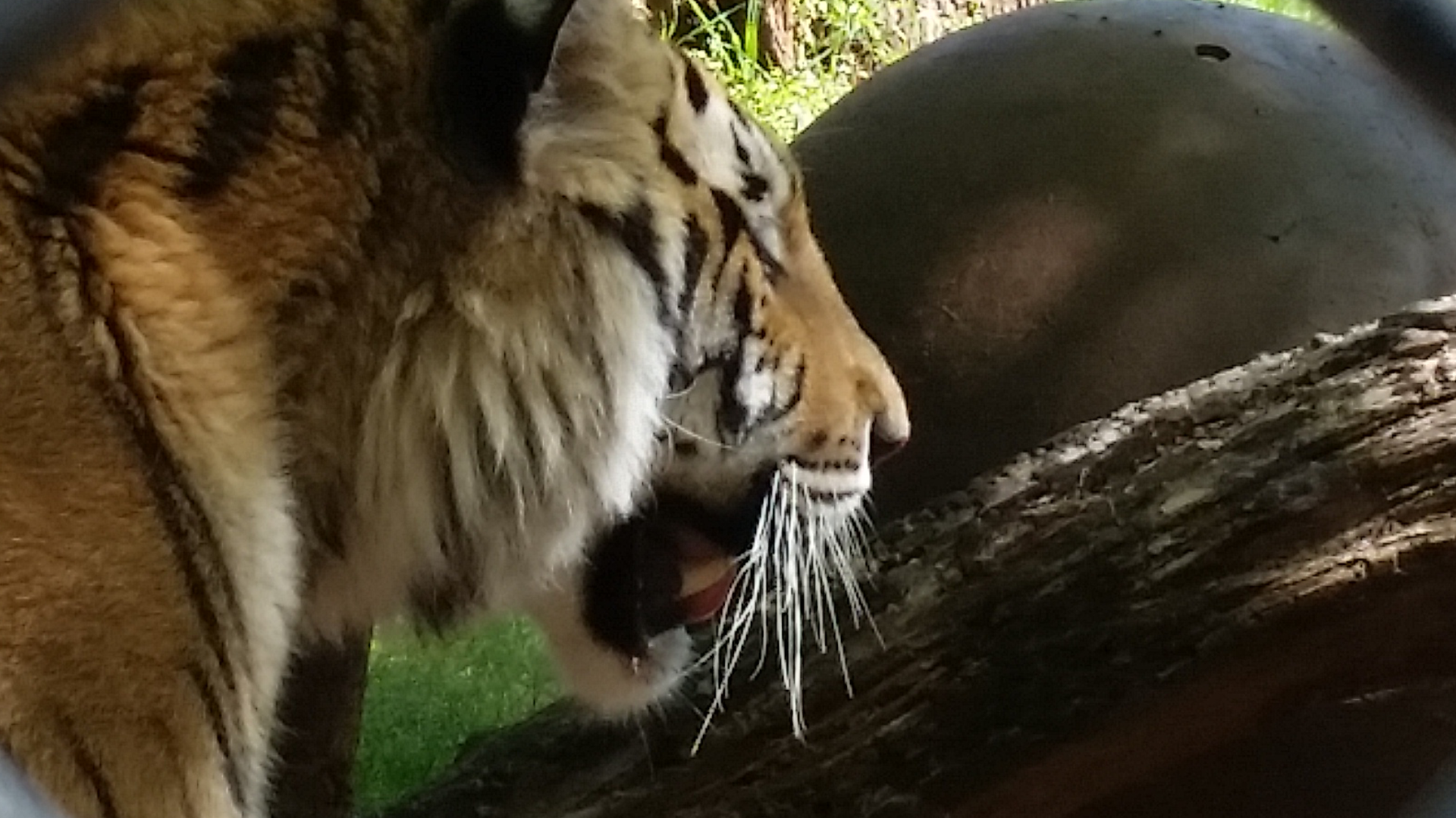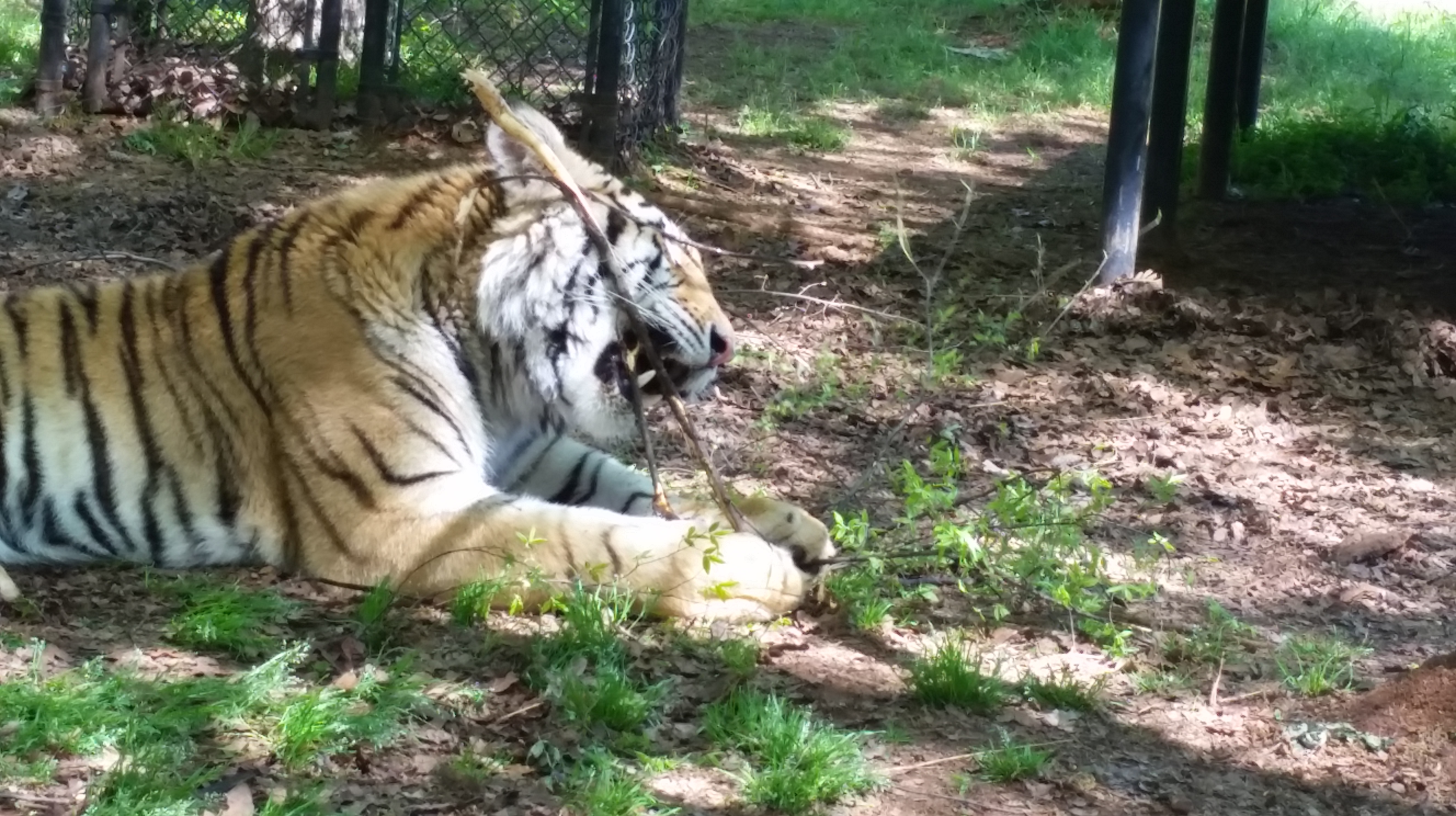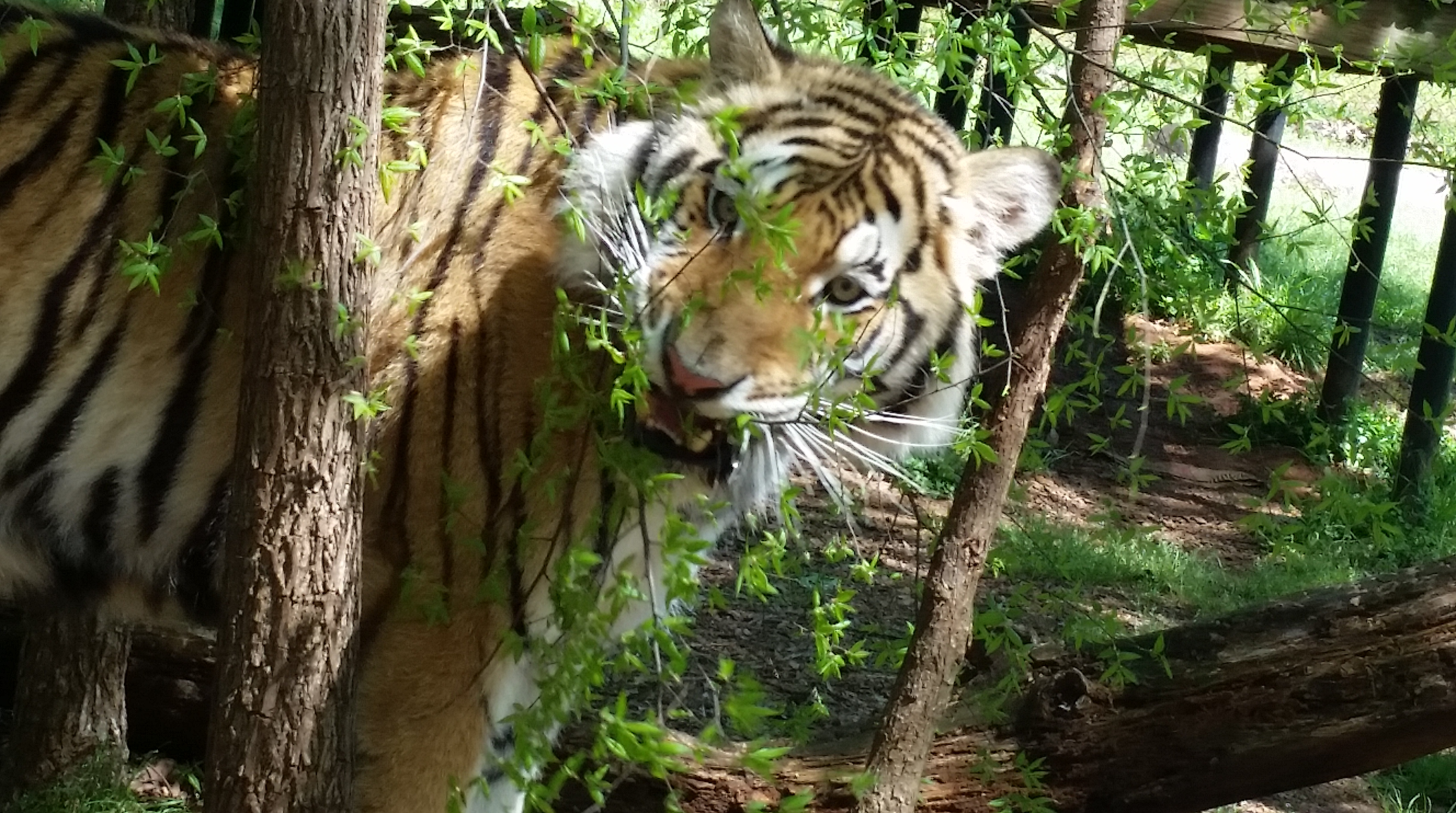 Amara, (who shares my birthday!) a Bengal Tiger rescued from a private owner who thought it was entertaining to allow her to “play” with the owner’s Rottweiler. Amara was scared and beaten and the local authorities removed her from this owner and placed her with Tiger Creek. It took months of rehabilitation to settle the frightened and stressed cub, and now she lives with Sierra, one of Michael Jackson’s former tigers from Netherland Ranch.