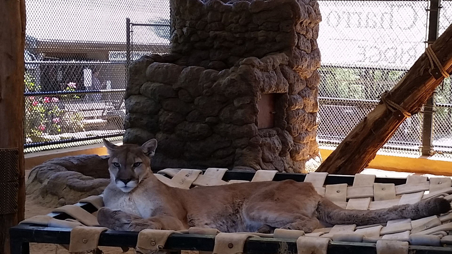 This is TinCup, a Puma rescued from New Mexico after being found and attacked by dogs. He was supposed to be euthanised as there was no rescue or rehabilitation facility for pumas in the area, but got a chance at survival and a new lease on life at Tiger Creek.