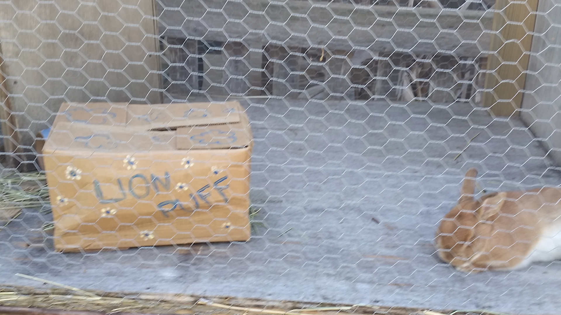 Saying goodbye to the ferocious Lion Puff, the resident bunny.