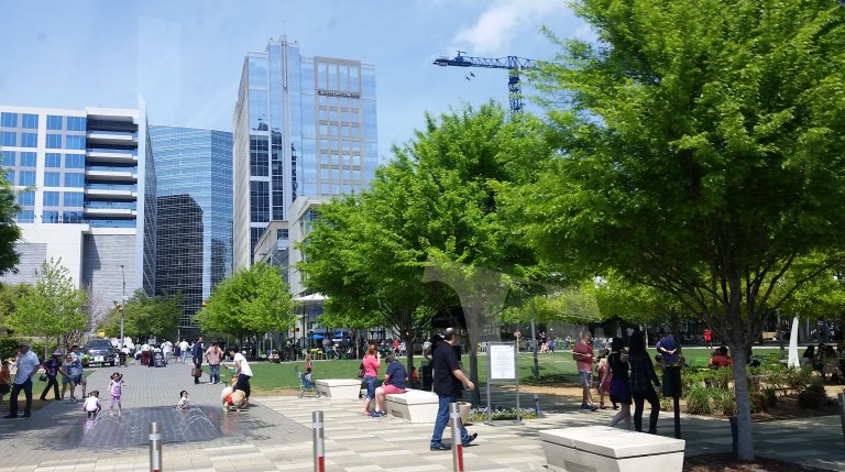 Klyde Warren Park, over 5 hectares of parkland built right over the freeway… the freeway goes down into a tunnel so the park can be right up on top. Food trucks have 1 year leases for their place around the edges of the park and there are hundreds of them!