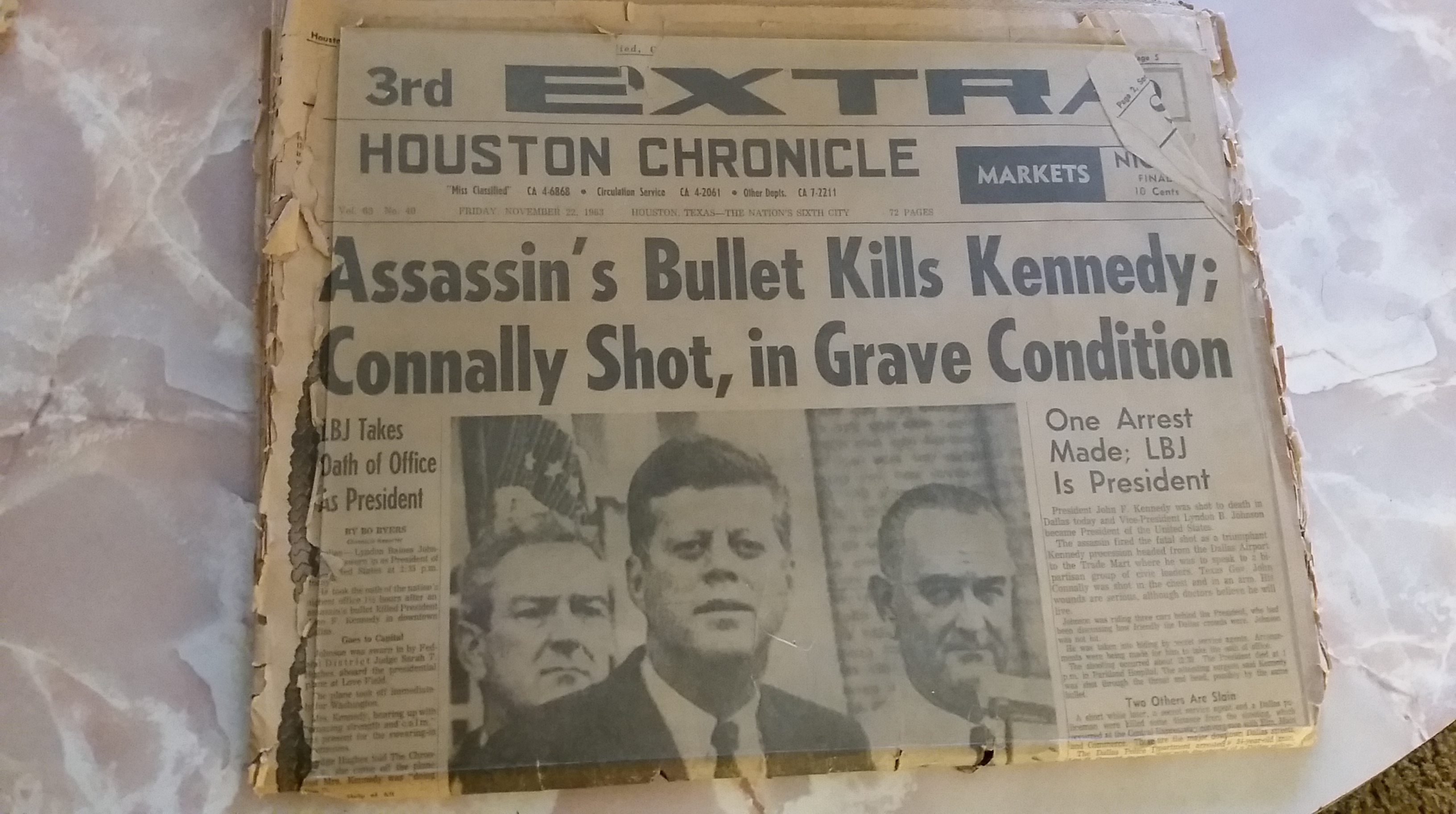 A copy of the Dallas Morning News published on November 23rd 1963 (the day after the Assasination of President Kennedy).