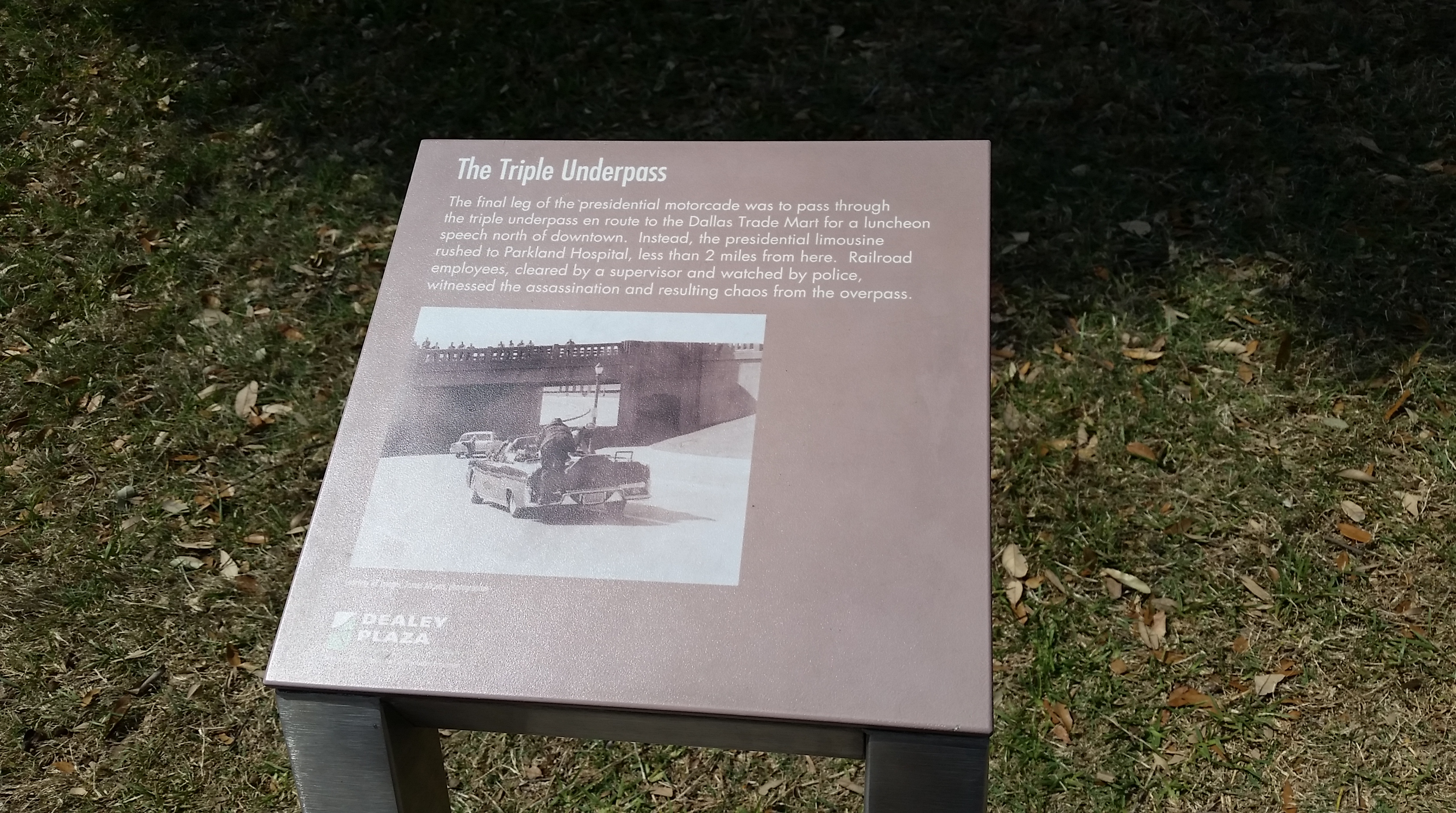 As the Presidential motorcade (and in 2017, our tour bus) continued on through the triple underpass, gaining speed.
