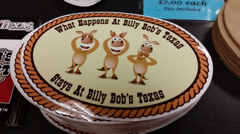 “Billy Bob’s Texas has never had a mechanical bull. They have real bulls and real cowboys with shows every Friday and Saturday night. Over 47,000 bulls have bucked in Billy Bob’s indoor arena.” – source Billy Bob’s Texas info sheet Fun Facts.