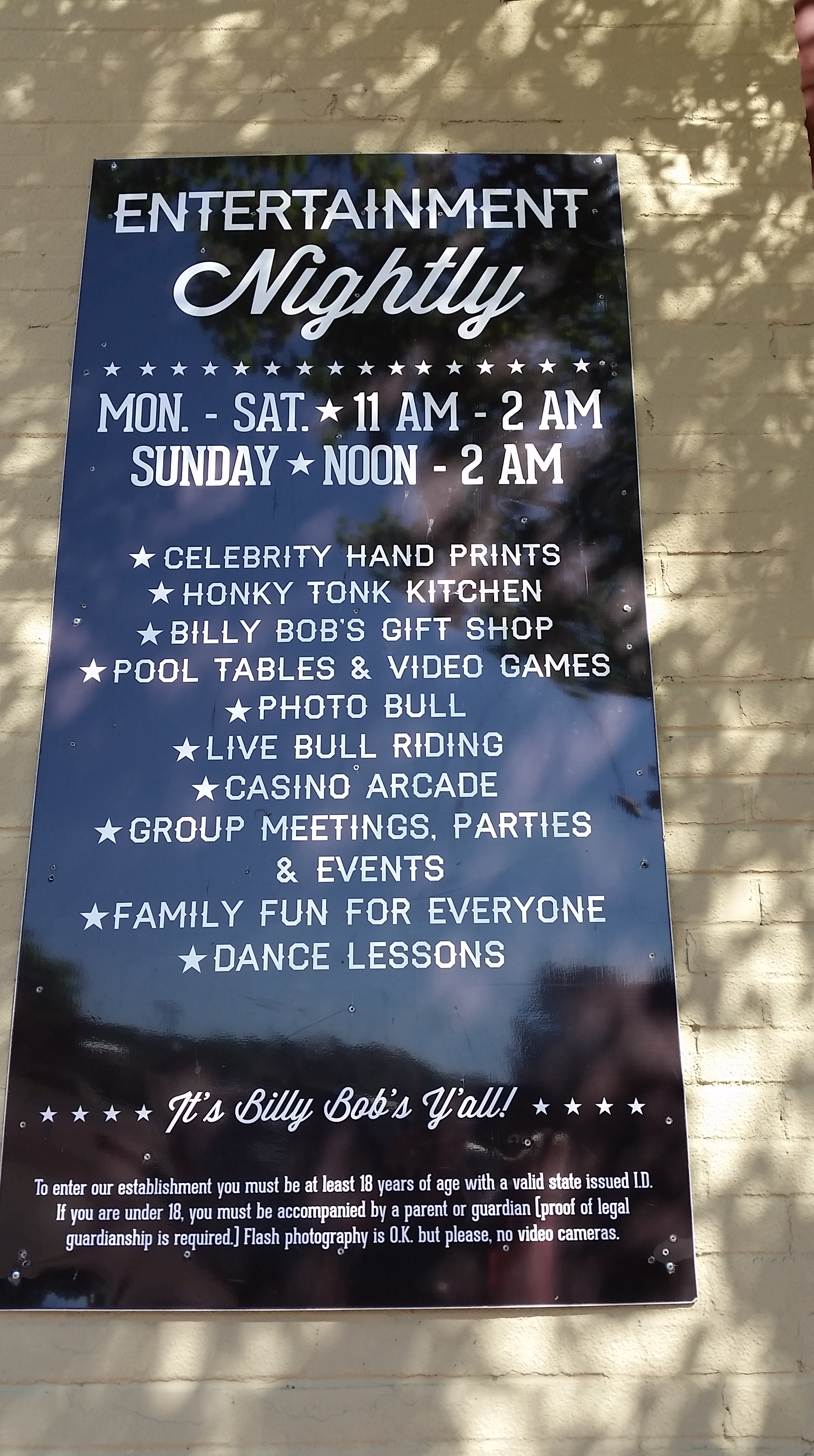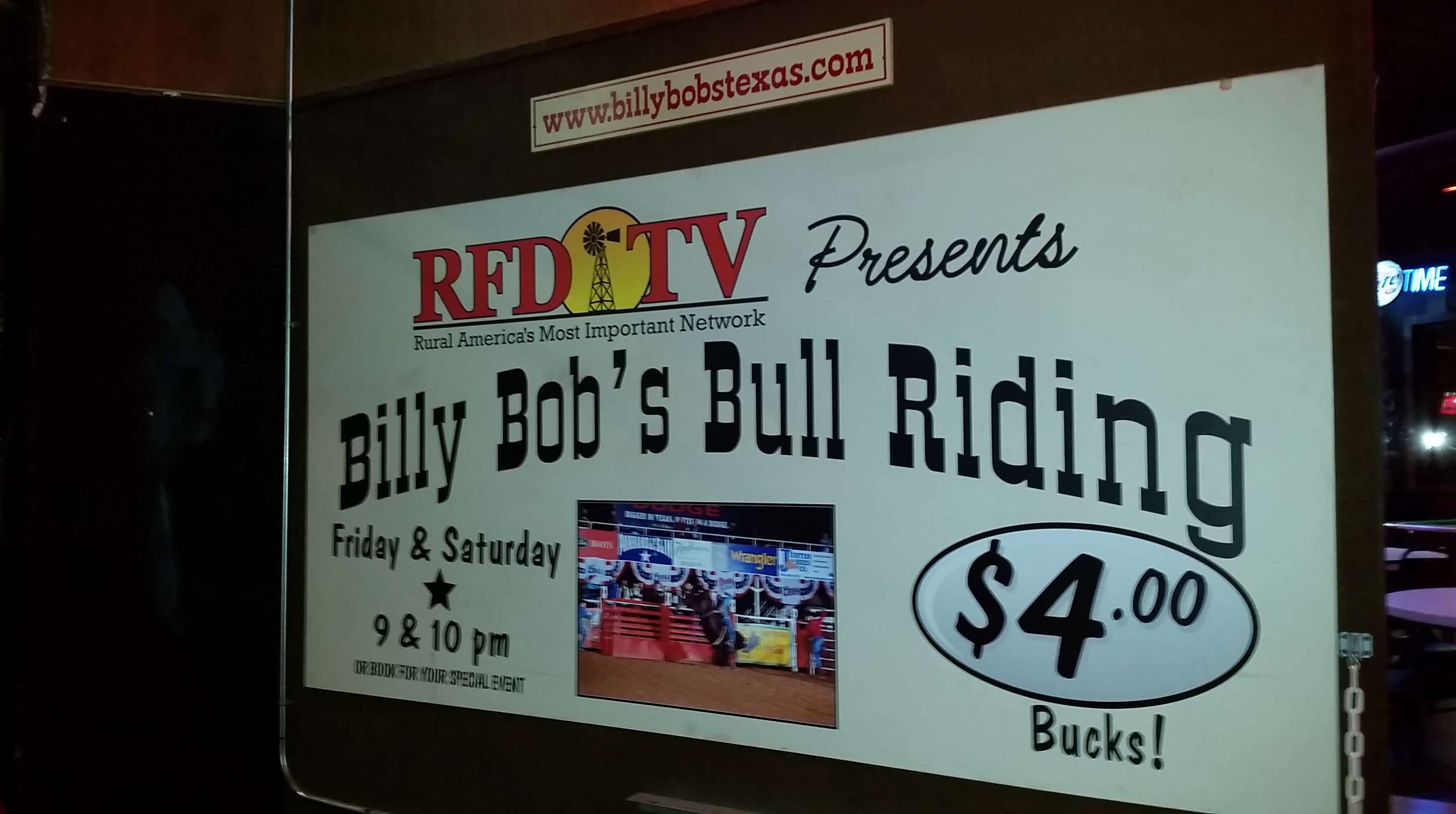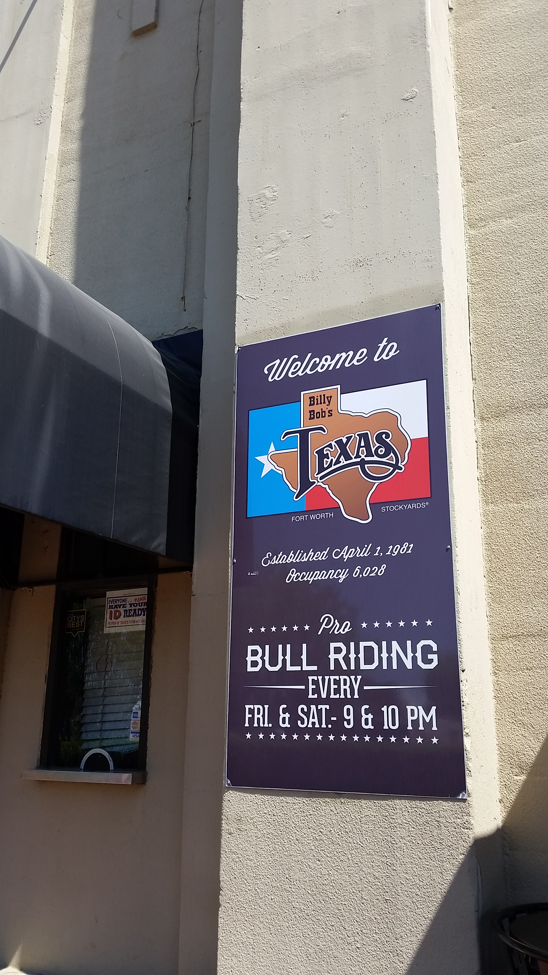 “Billy Bob’s Texas has never had a mechanical bull. They have real bulls and real cowboys with shows every Friday and Saturday night. Over 47,000 bulls have bucked in Billy Bob’s indoor arena.” – source Billy Bob’s Texas info sheet Fun Facts.