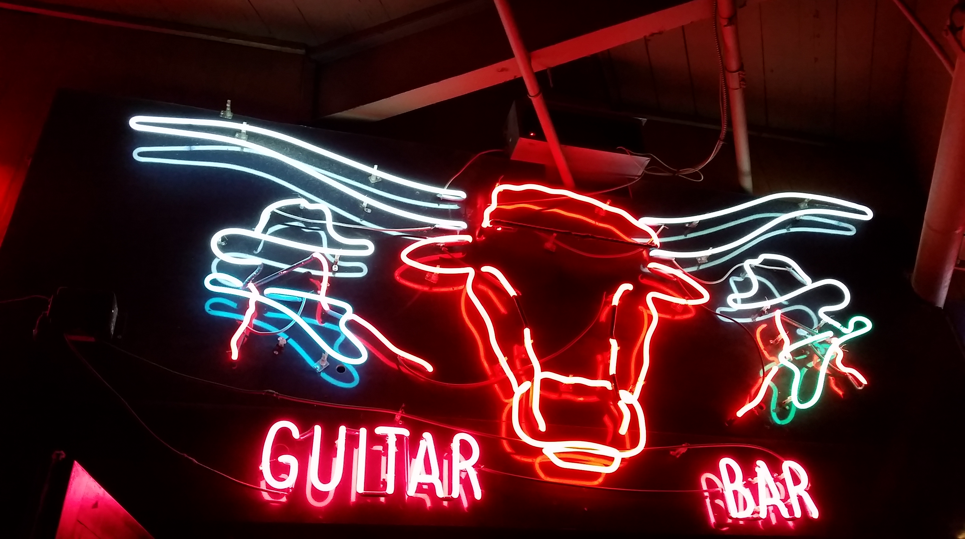 The famous mirror-ball saddle above the Honky Tonk dance floor. As featured in the movie starring Dolly Parton and Sylvester Stallone, “Rhinestone”.