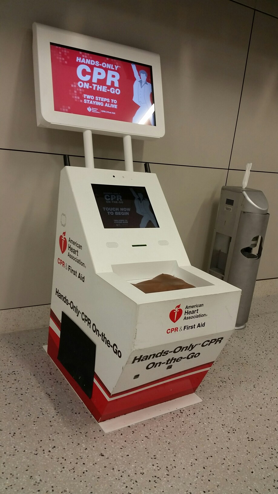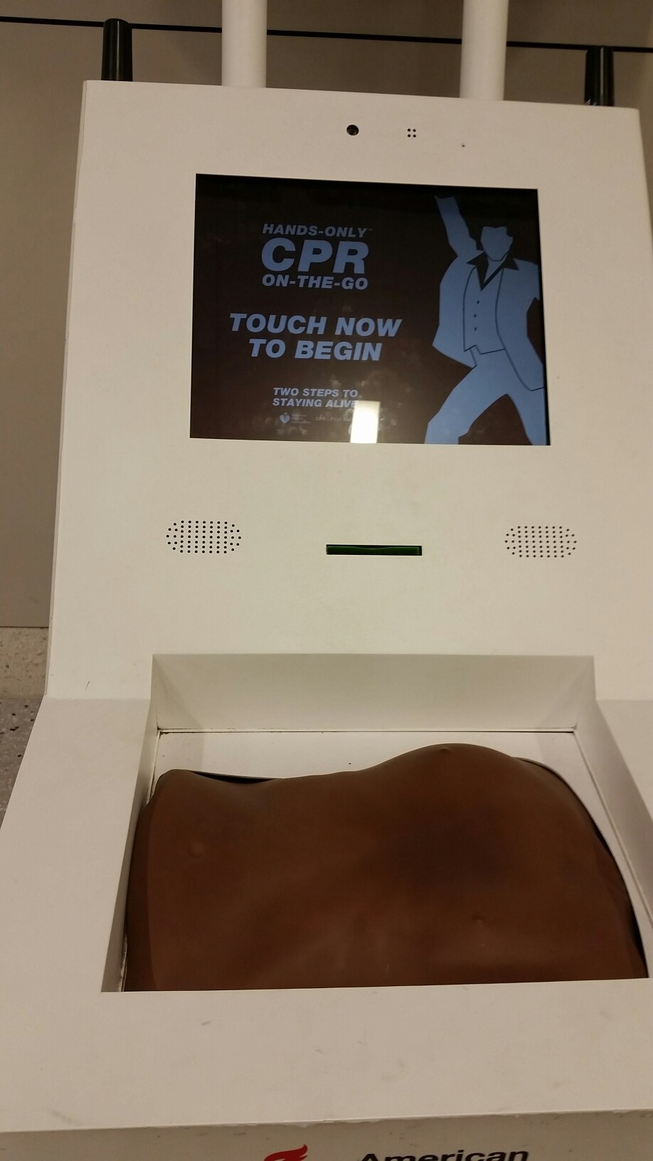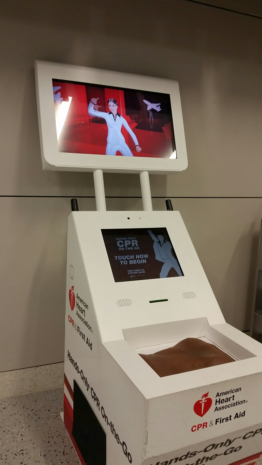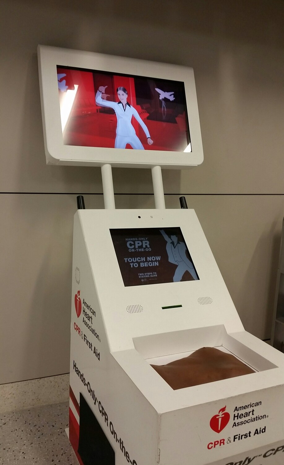 As a First Aid Trainer in Australia, this facinated me! Learn CPR right here in the Dallas Fort Worth airport!