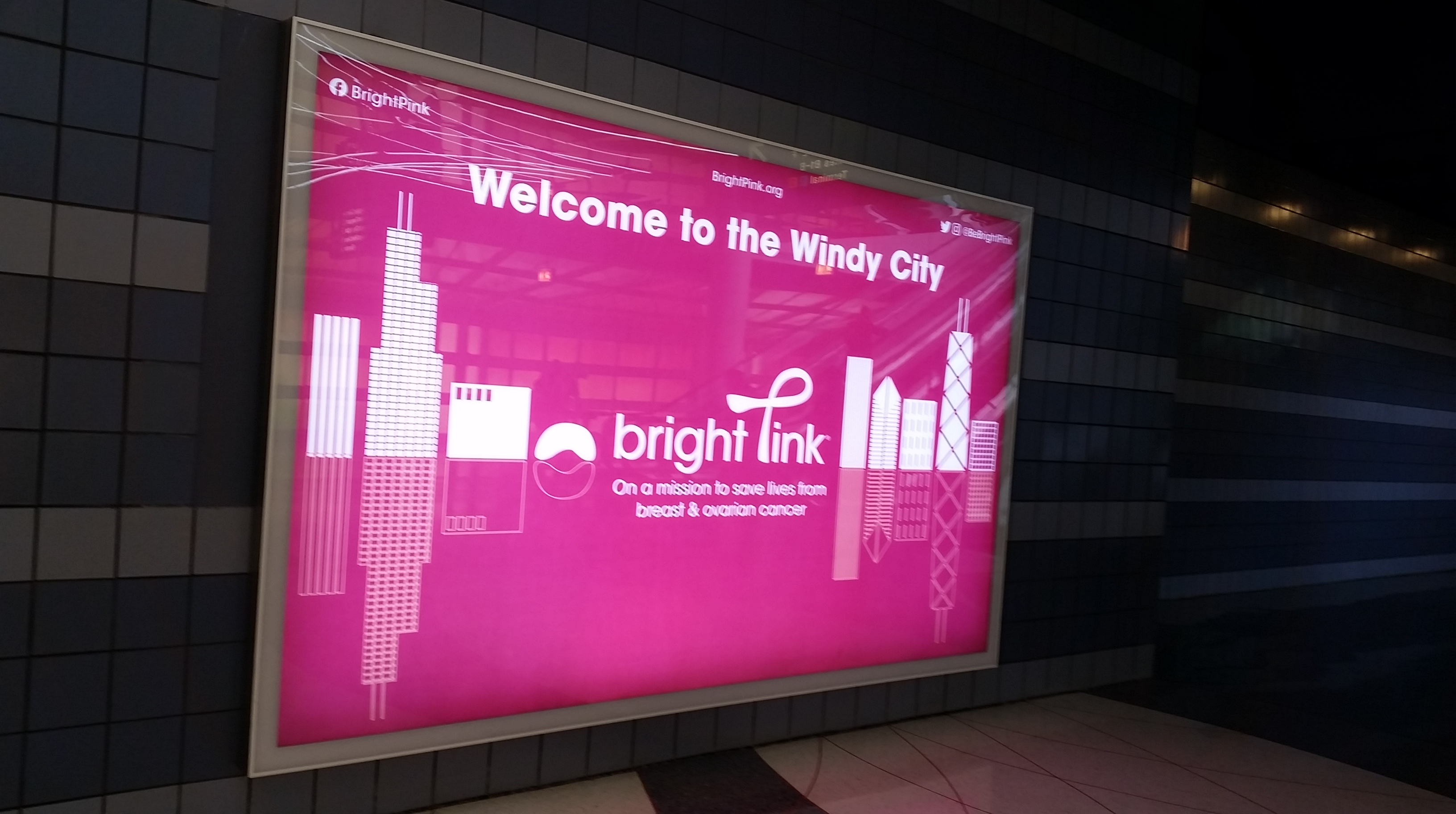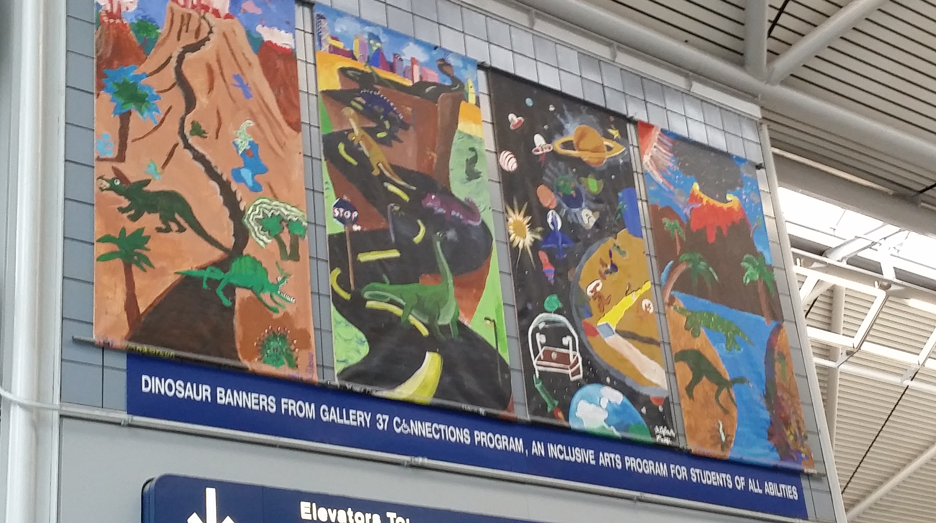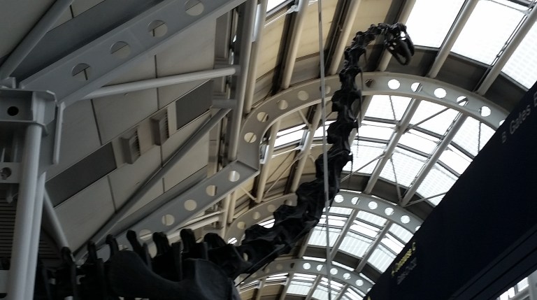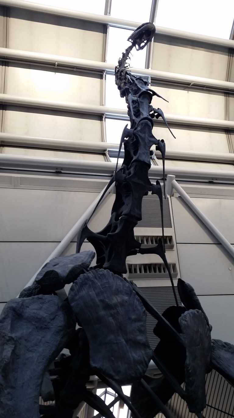 This Brachiosaurus altithorax is right there in the terminal, taking up a fair amount of room, as part of The Field Museum advertisement.