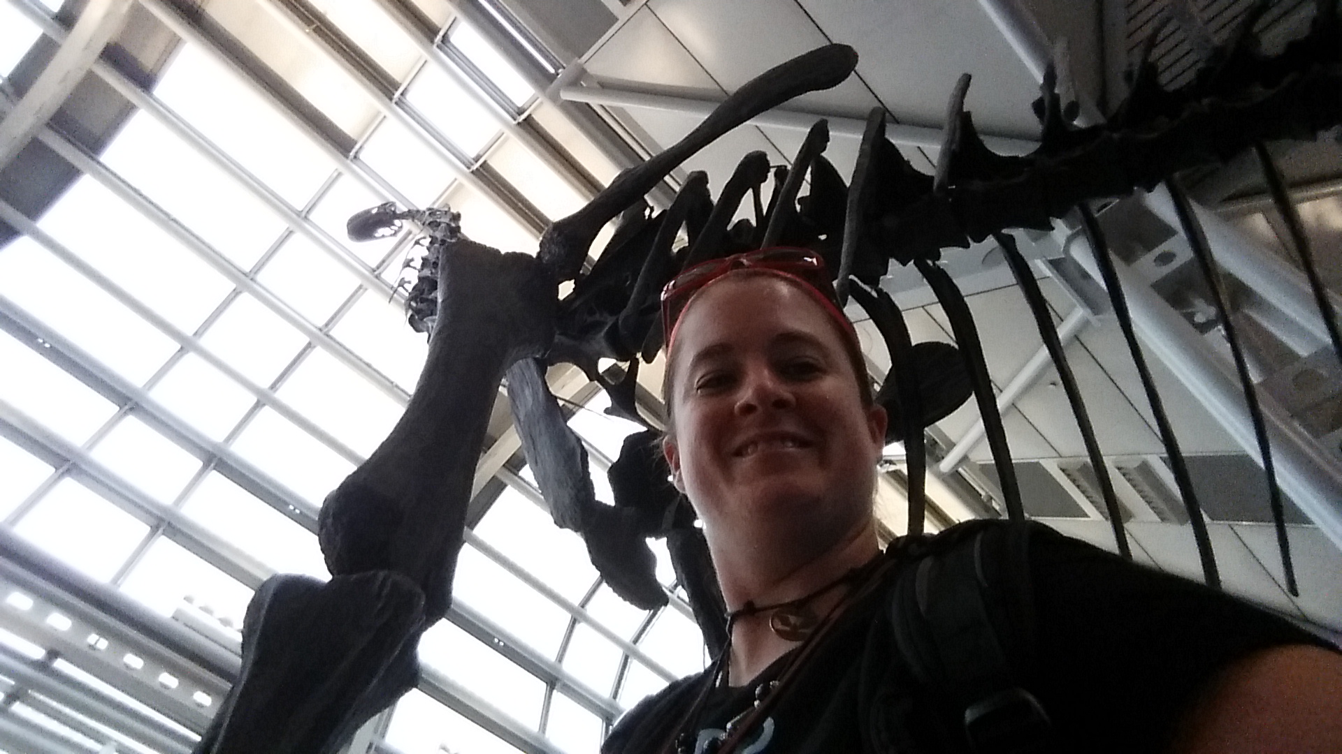 Immediately as I step off the plane, I’m greeted by a…. dinosaur!