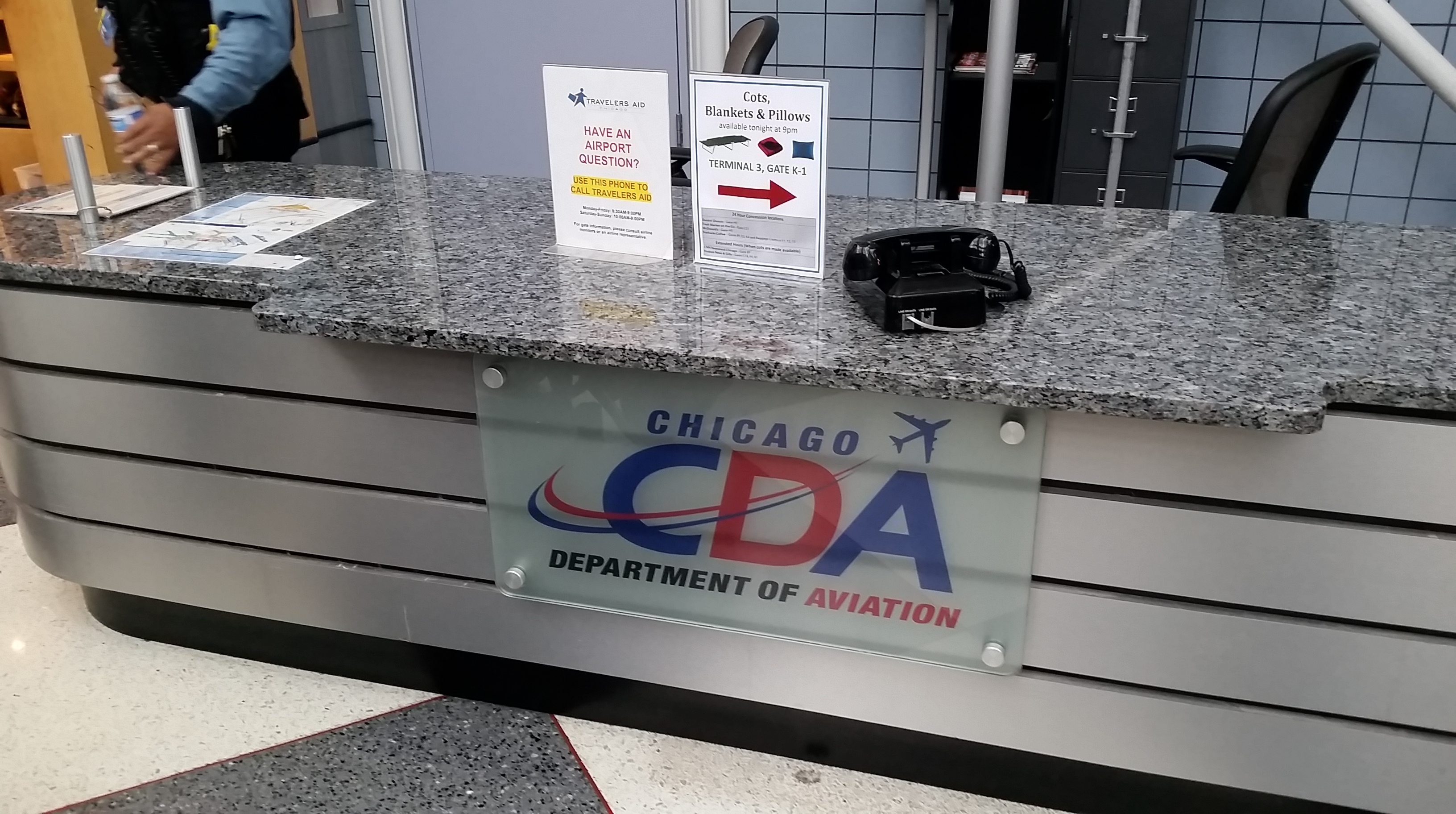 The rain is getting inside the terminal in numerous places, buckets are everywhere! Drip. Drip. Drip.