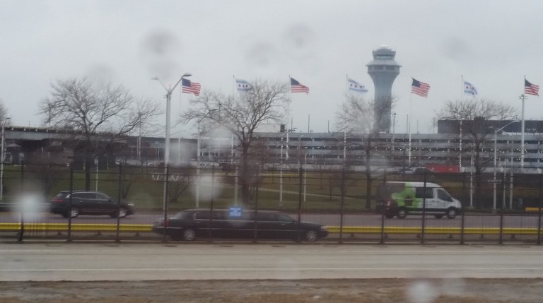 Arriving into a drizzly Chicago.