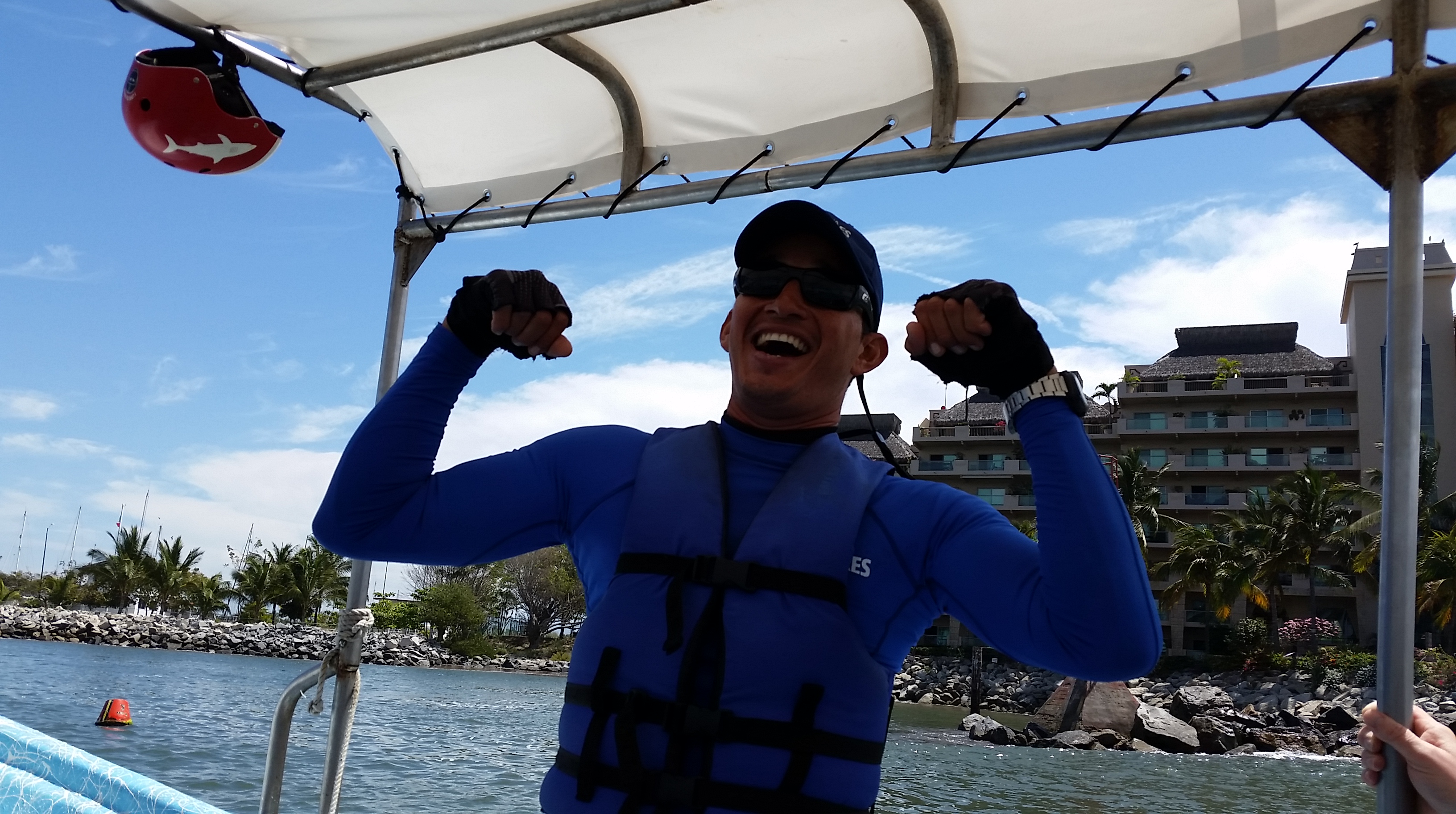 On the boat heading out for the first thrill of the day – Flyboarding! (Pics of the actual FlyBoarding TBA when I get to download them from the USB! π)